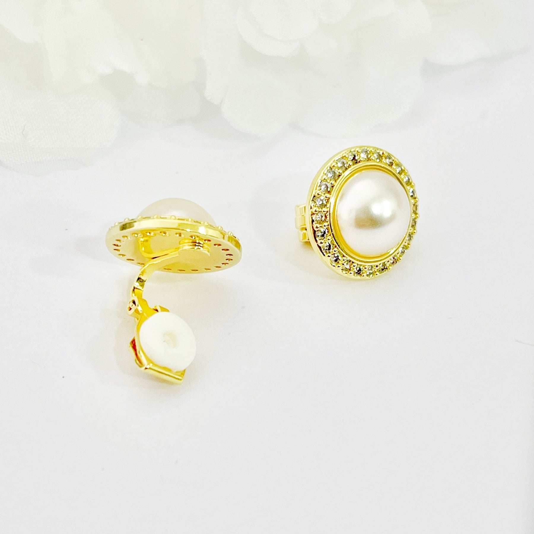 Aretes de Acero Prensa Dorada Perla Majestuosa