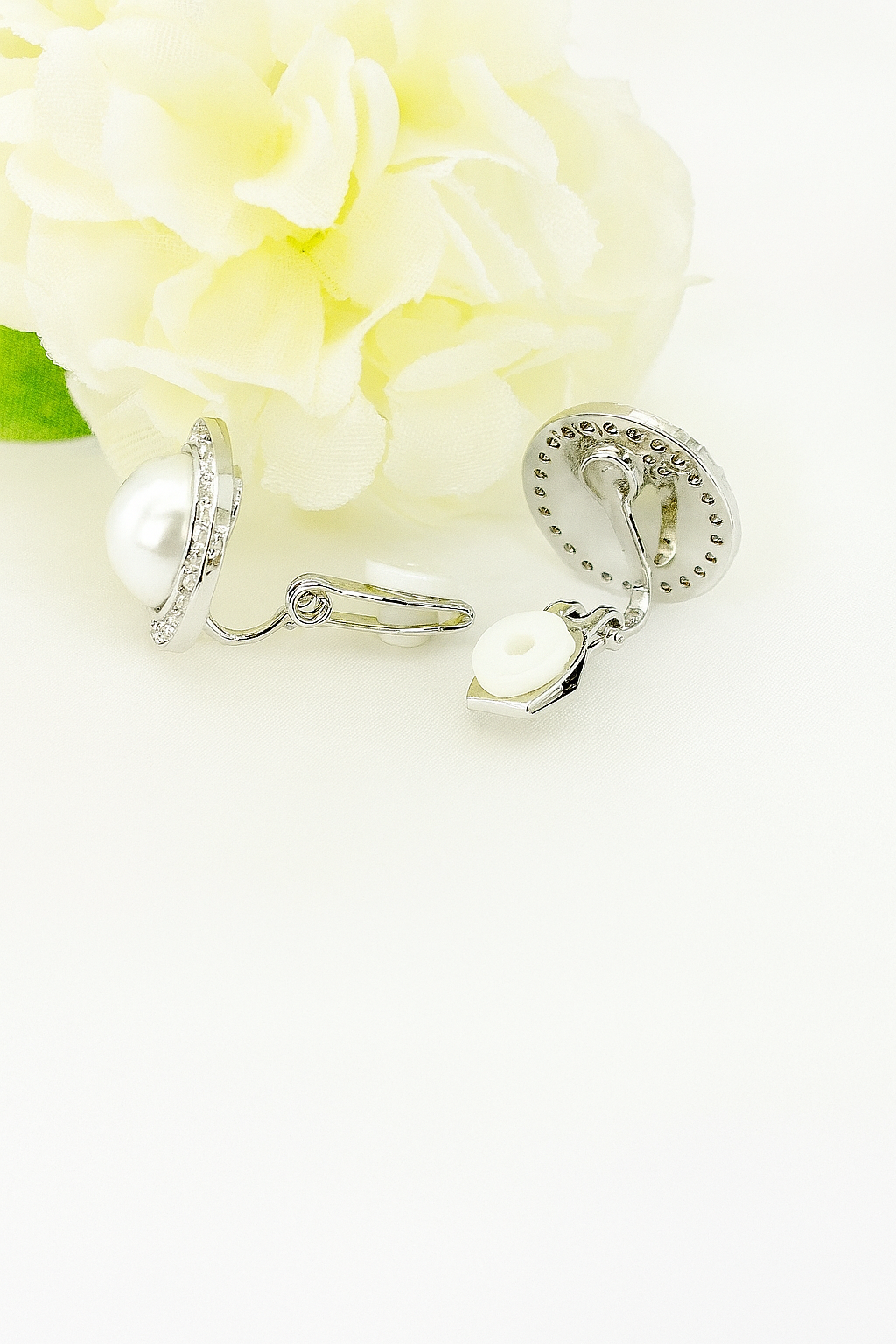 Aretes de Acero Prensa Plateada Perla Majestuosa