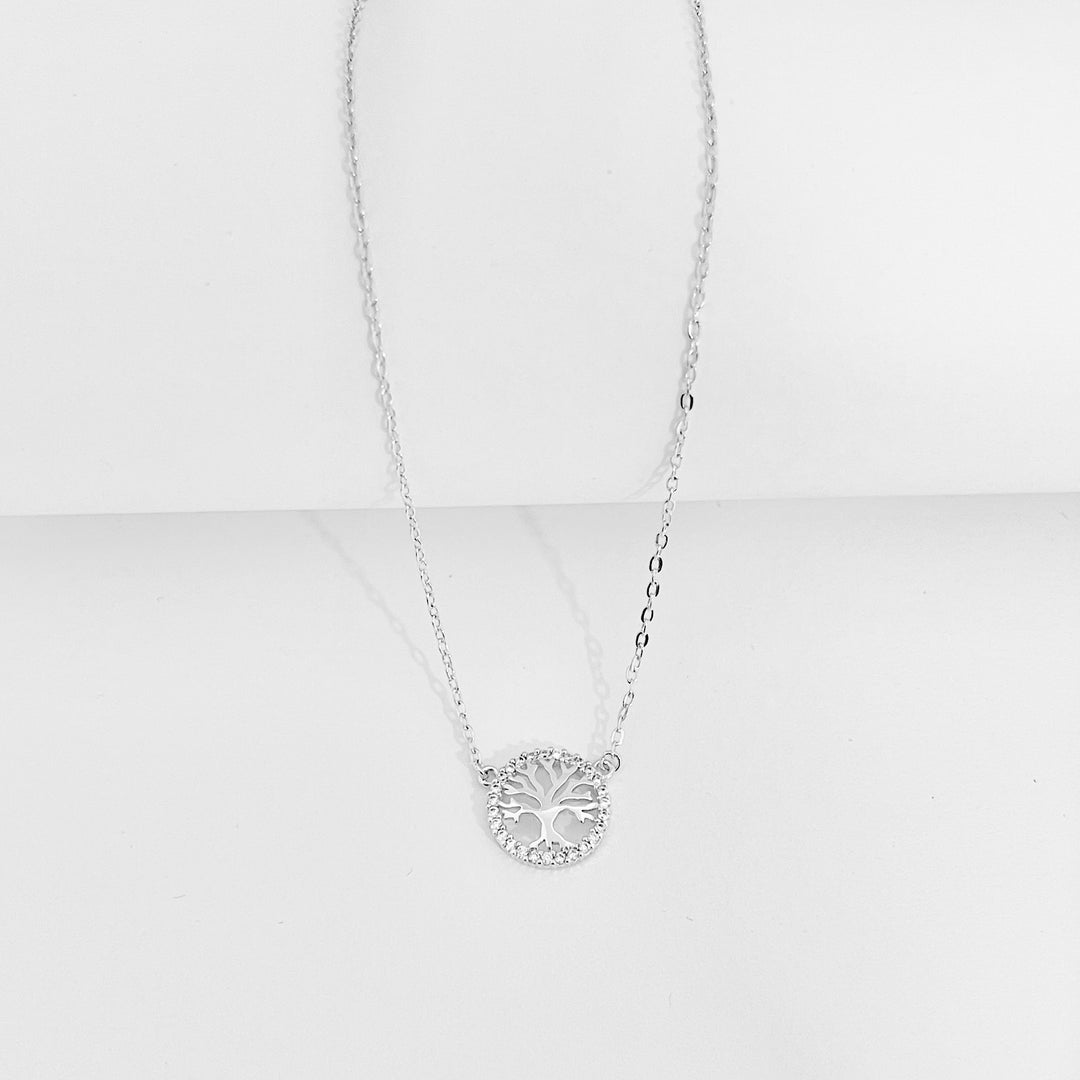 Collar de Acero Árbol Plateada