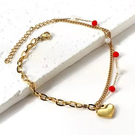 ¡Te presentamos la tobillera de acero inoxidable Piedras Rojas y Blancas Esta hermosa y elegante tobillera es perfecta para cualquier ocasión, tanto si te arreglas como si no.