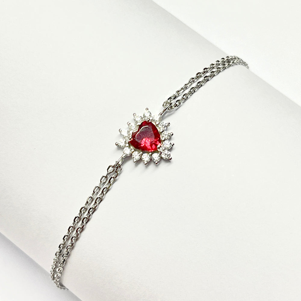 Pulsera Plata ❤️Corazón Rojo Vivo