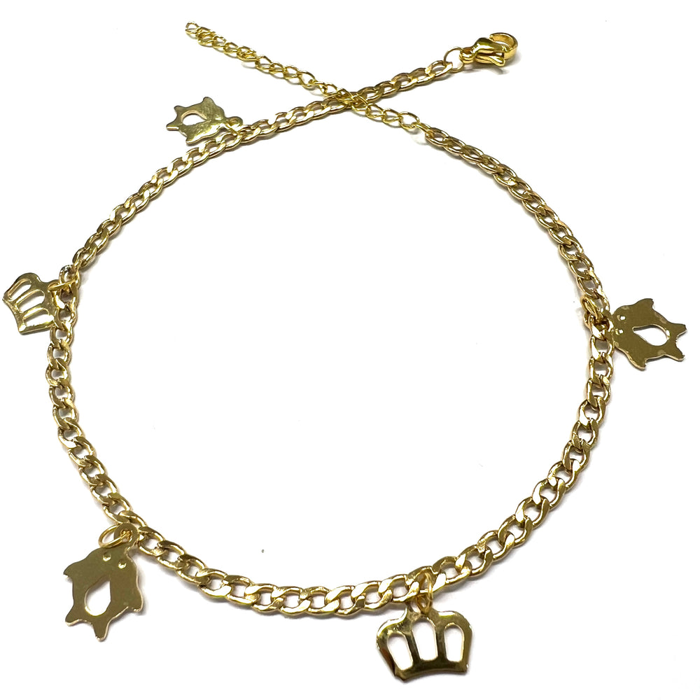 Tobillera Acero Dorada Coronas Rosadas 👑
