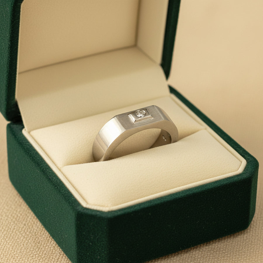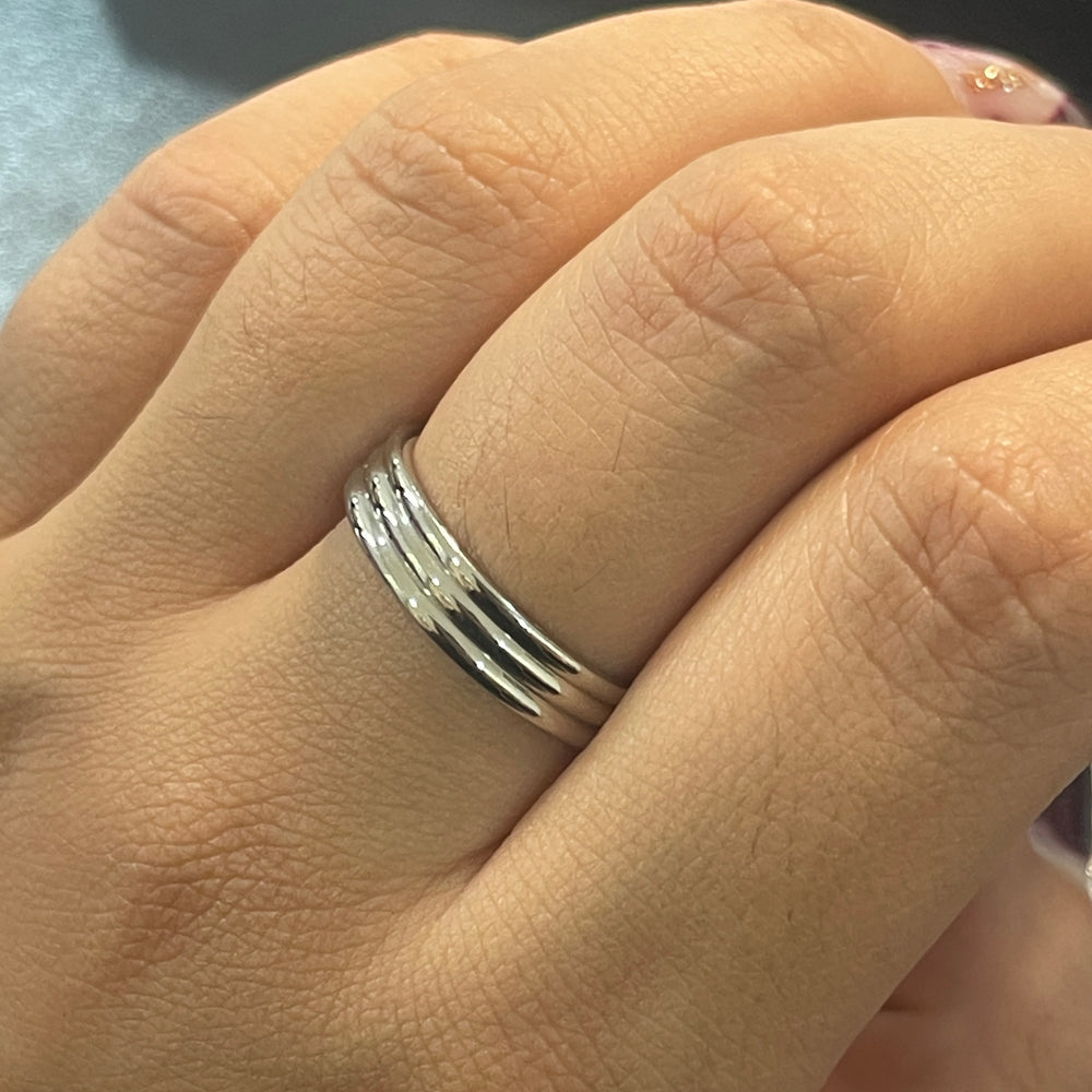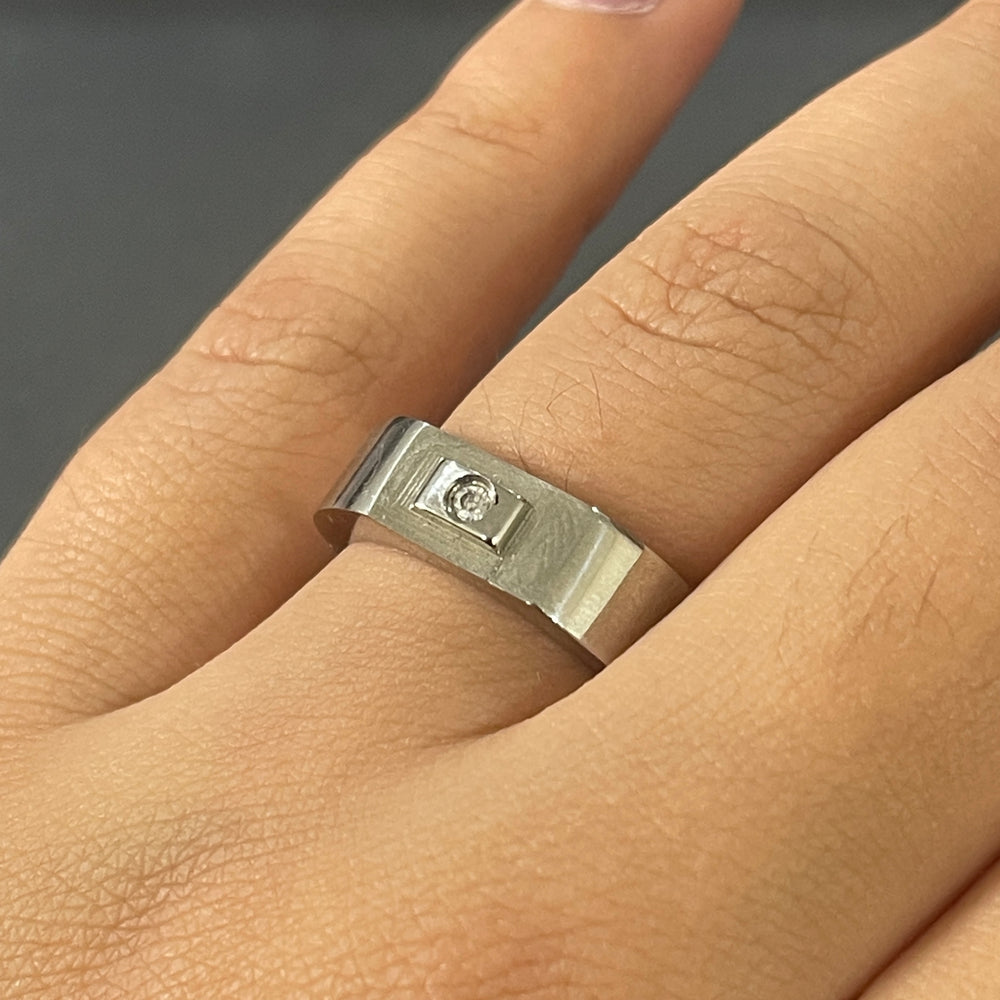 Anillo de Acero Brillo Grueso Piedrita
