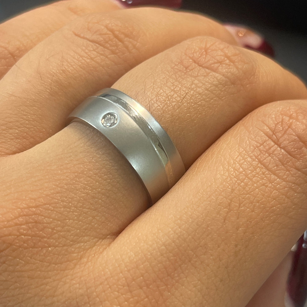 Anillo de Acero Brillo Delgado Piedrita