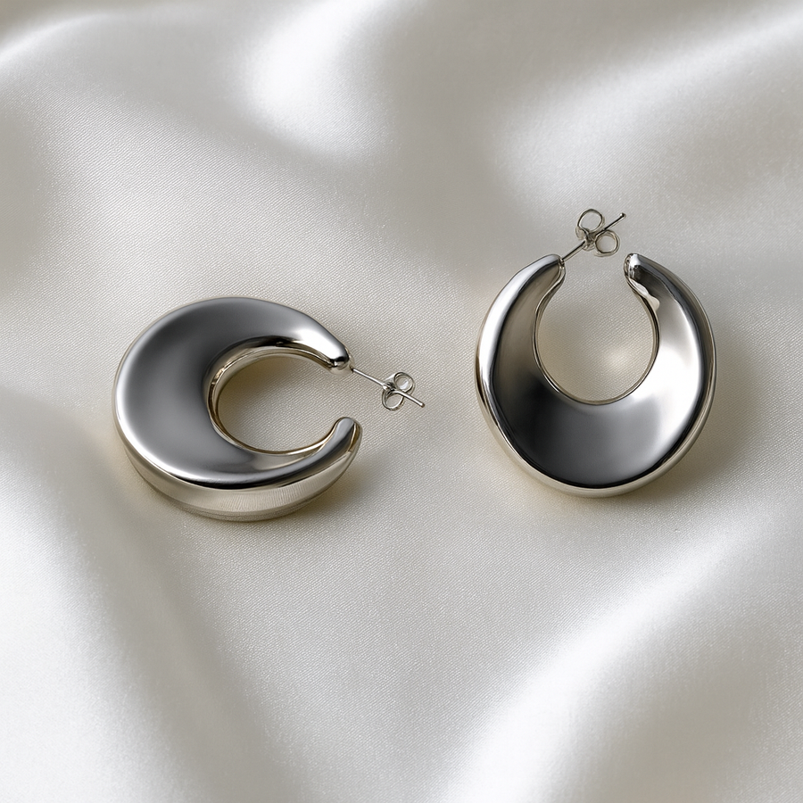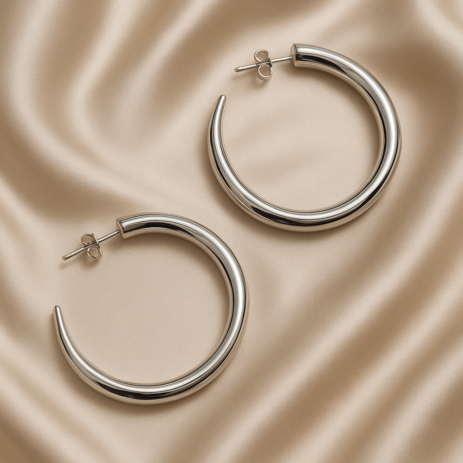 Aretes Acero Brillantes Plateado ✨ 35MM