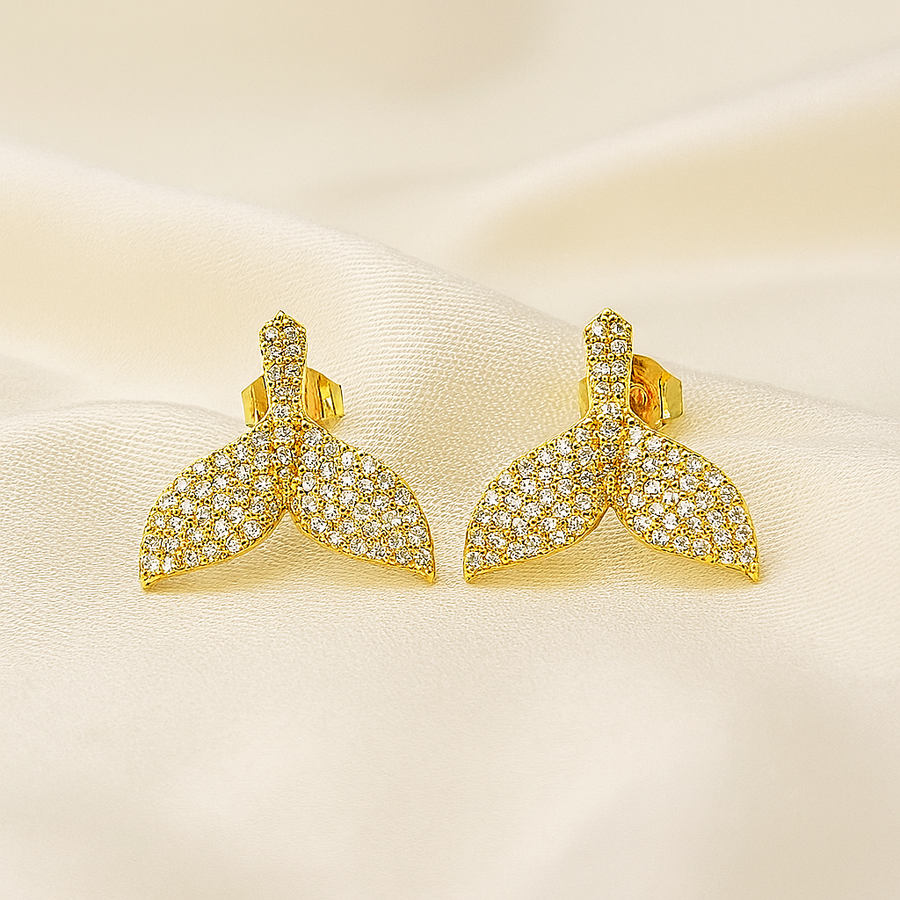 Aretes de Acero Dorado Cola Sirena 🧜♀️