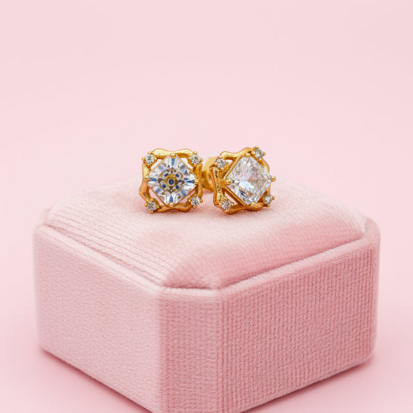 Aretes de Acero Prensa Dorada Perla Majestuosa