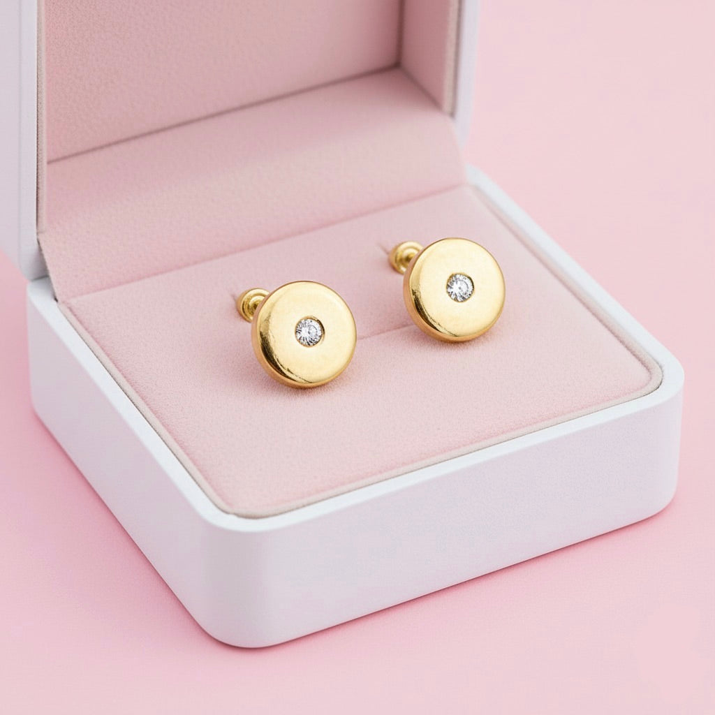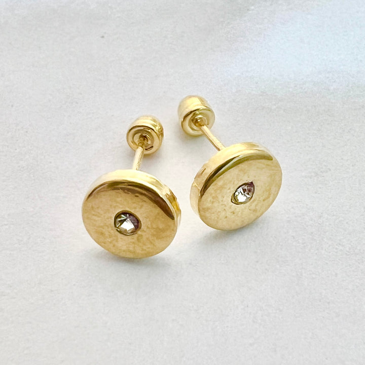 Aretes de Oro 10k Redondo Circonia 6MM