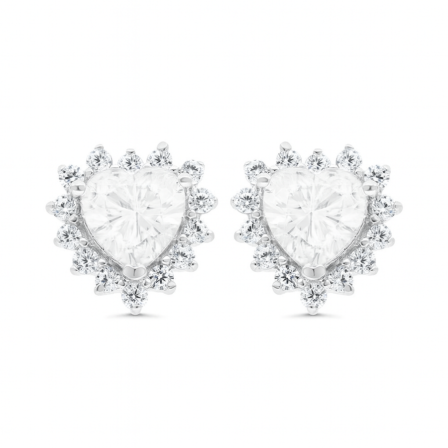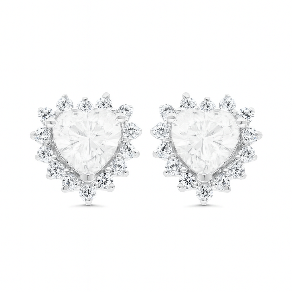 Aretes de Plata Corazón Reina Blanca 7MM🤍
