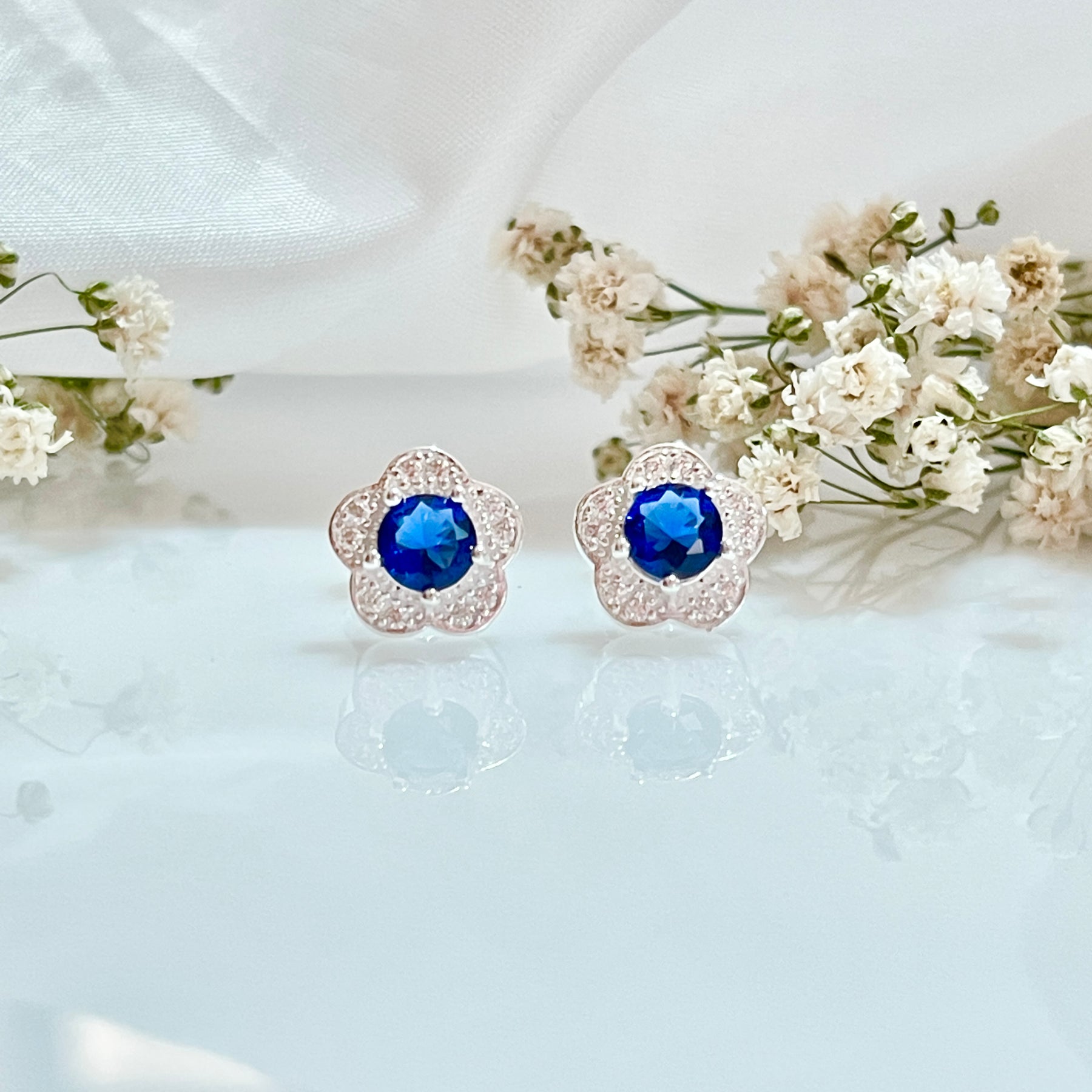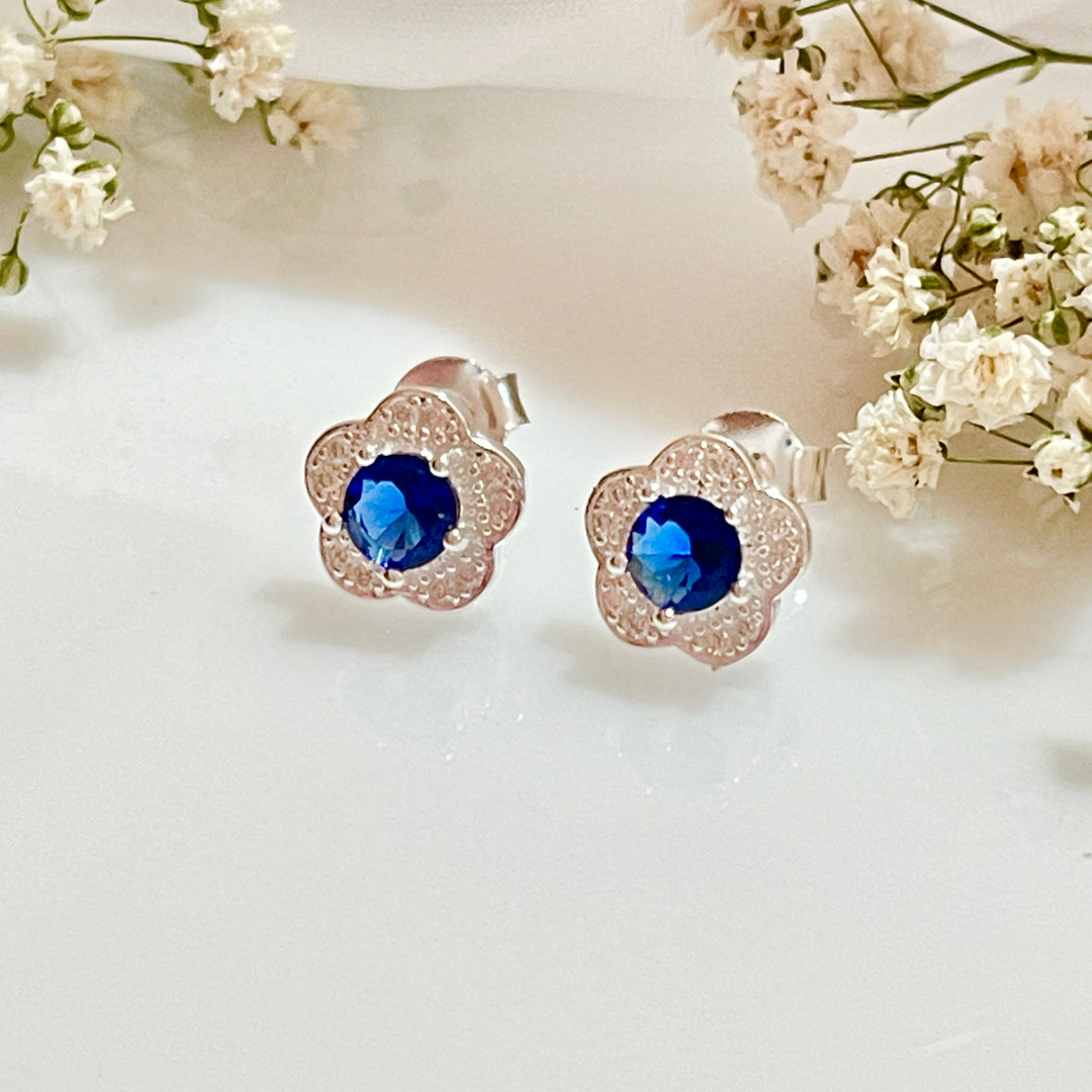 Aretes de Plata Flor Circonita Azul 10MM | Nicola Joyería en Costa Rica