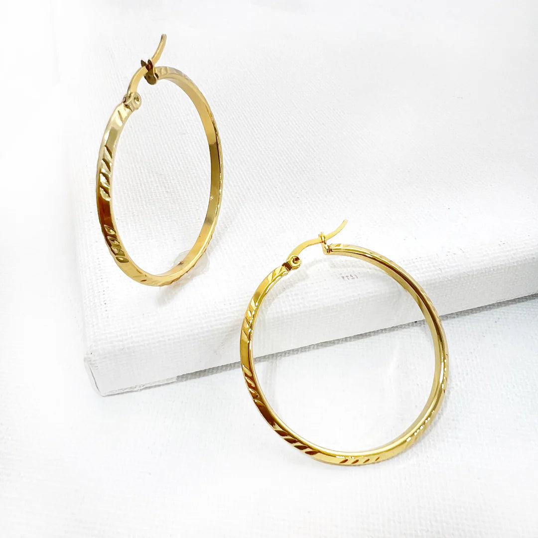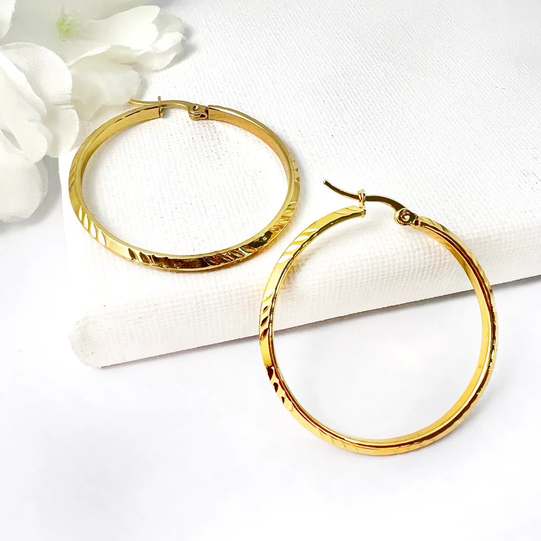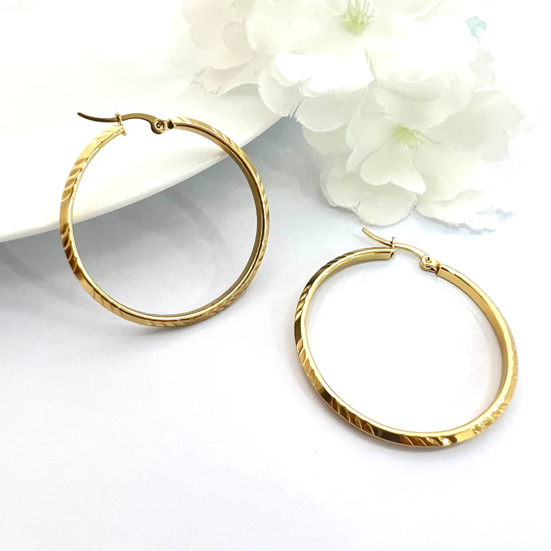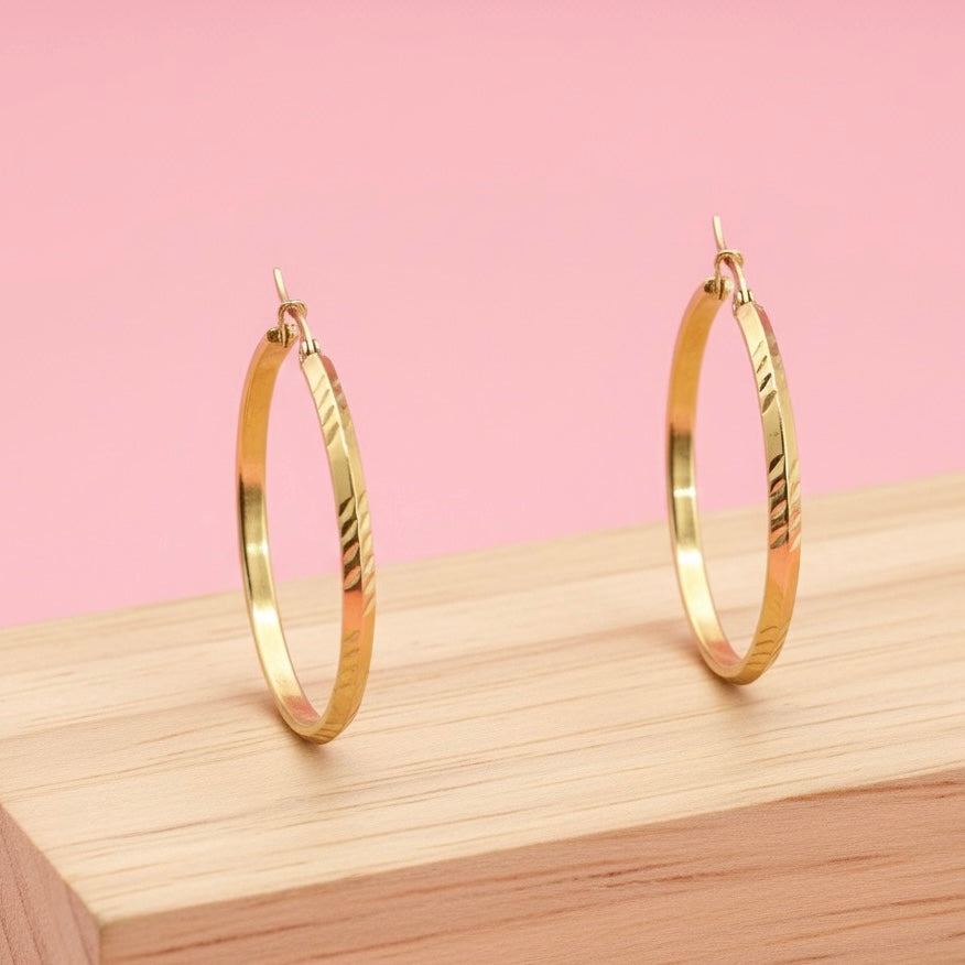 Aretes tipo argollas de acero inoxidable doradas con cierre tipo puente.