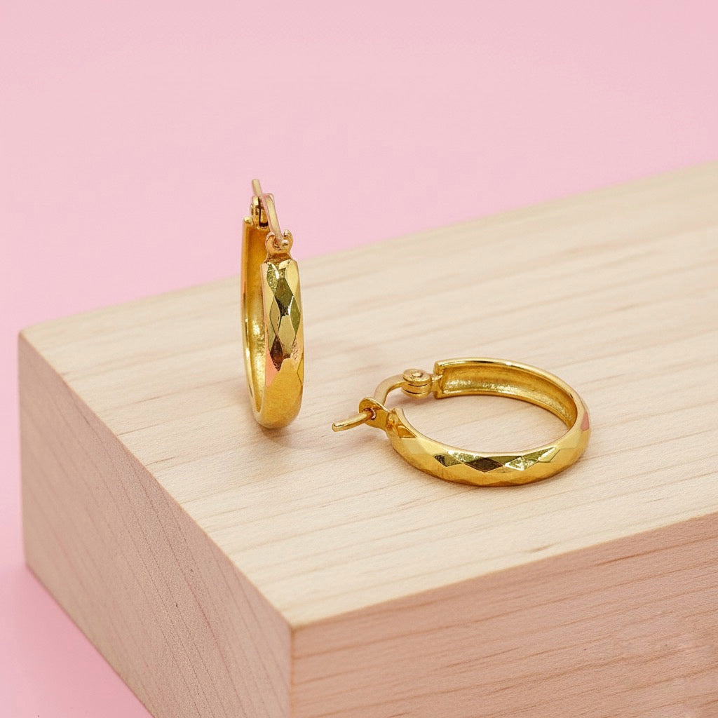 Aretes tipo argollas de acero inoxidable doradas con cierre tipo puente