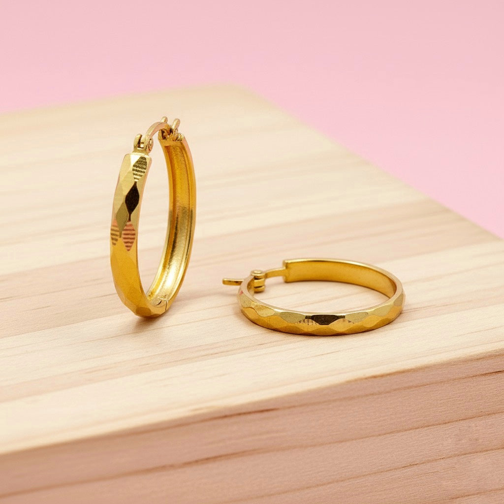 Aretes tipo argollas de acero inoxidable doradas con cierre tipo puente