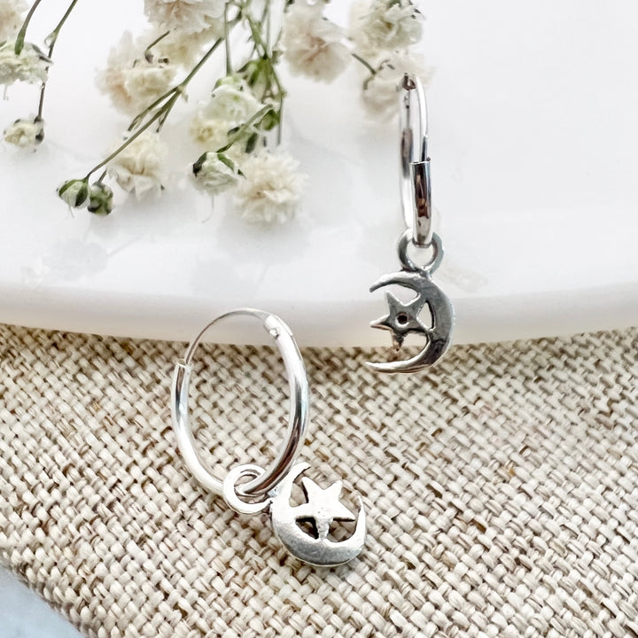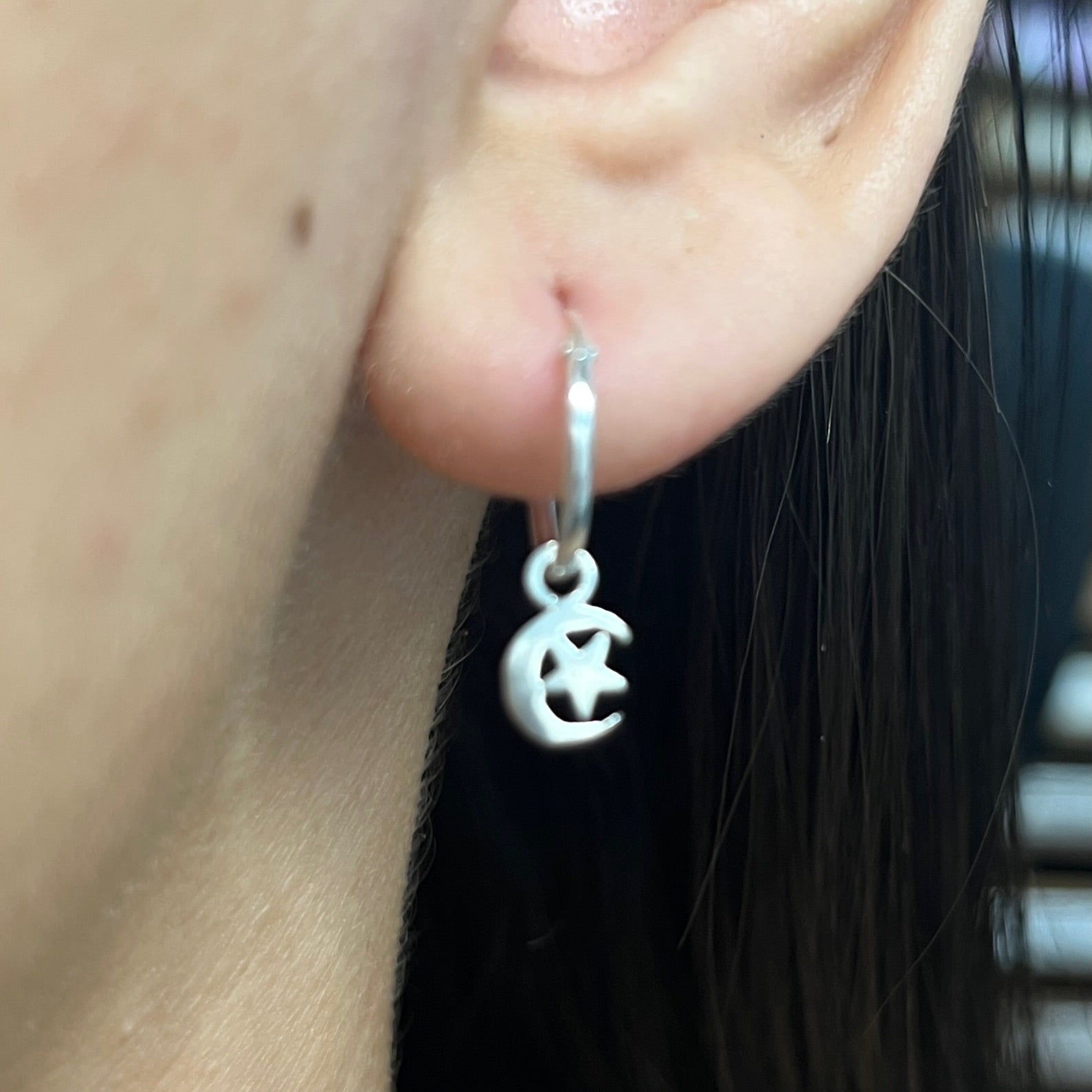 Compra online unas argollas pequeñas de plata con Luna y Estrella  ⭐️🌙  colgantes en Nicola Joyería  ✔️ Envío en 48 horas ✔️ Alta Calidad ✔️ Costa Rica 🇨🇷
