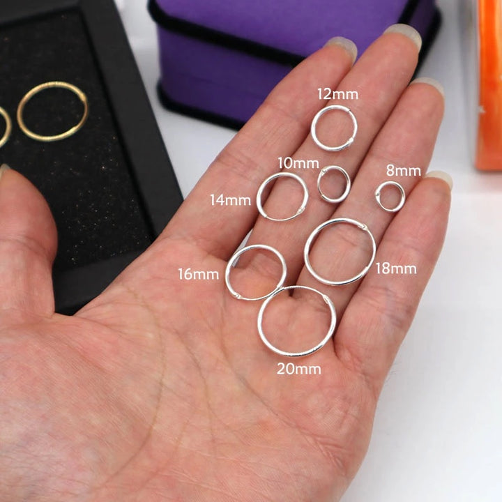 • Par de  argollas redondas sinfín de plata 925 genuina.