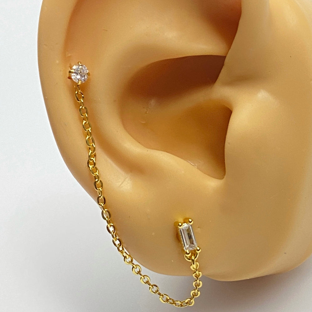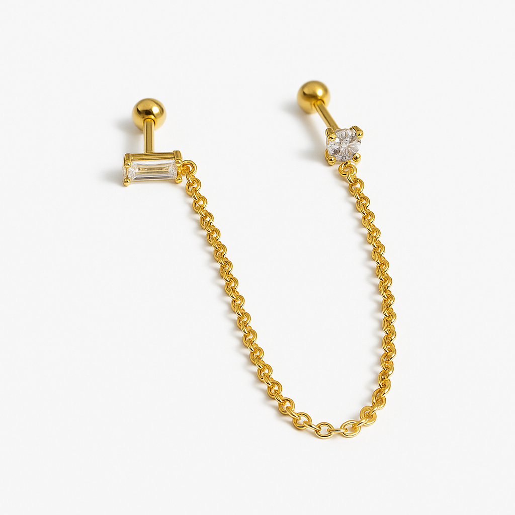 ¿Busca un arete único y elegante que atraiga las miradas? Entonces echa un vistazo a nuestro increíble arete de cadena simple. Este precioso arete se vende solo, por lo que puedes lucir un look desparejado que está totalmente de moda. El arete cuenta con una cadena que cuelga, añadiendo un toque elegante. Y como necesita dos piercings en una oreja, ¡seguro que dará que hablar!