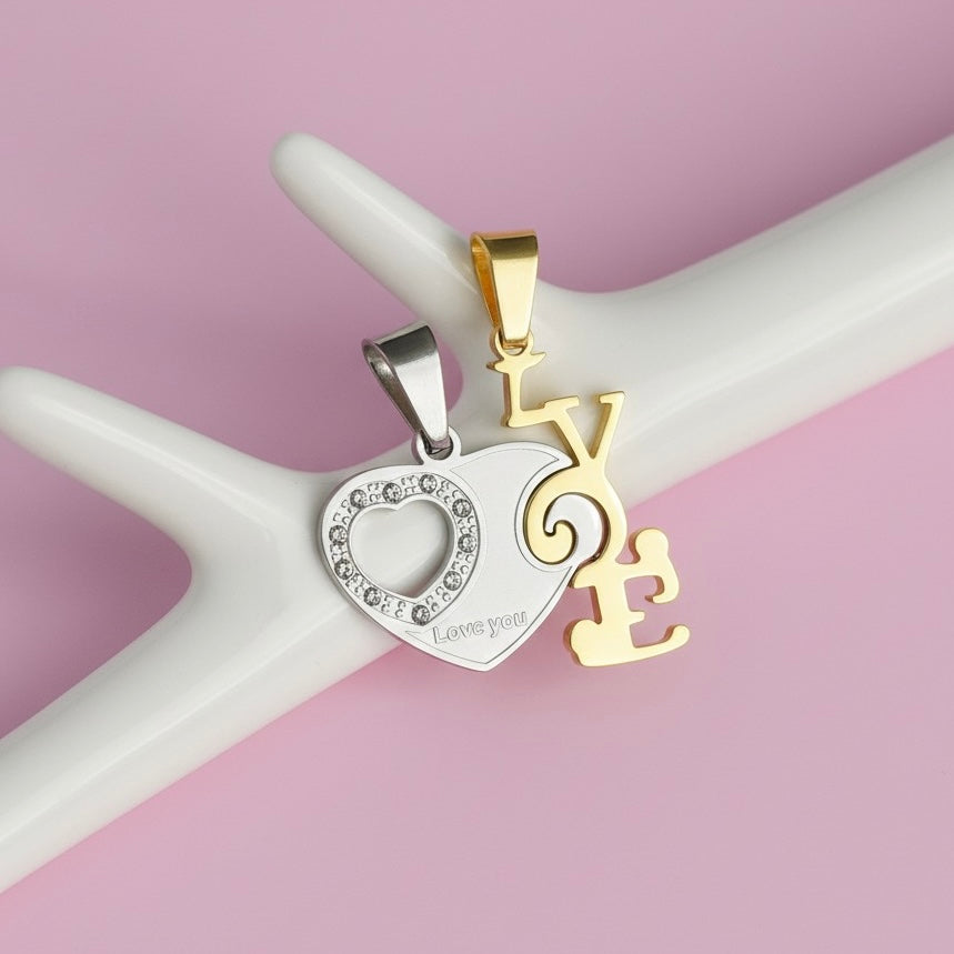 • Dije de corazón de Acero Inoxidable plateado con dorado.