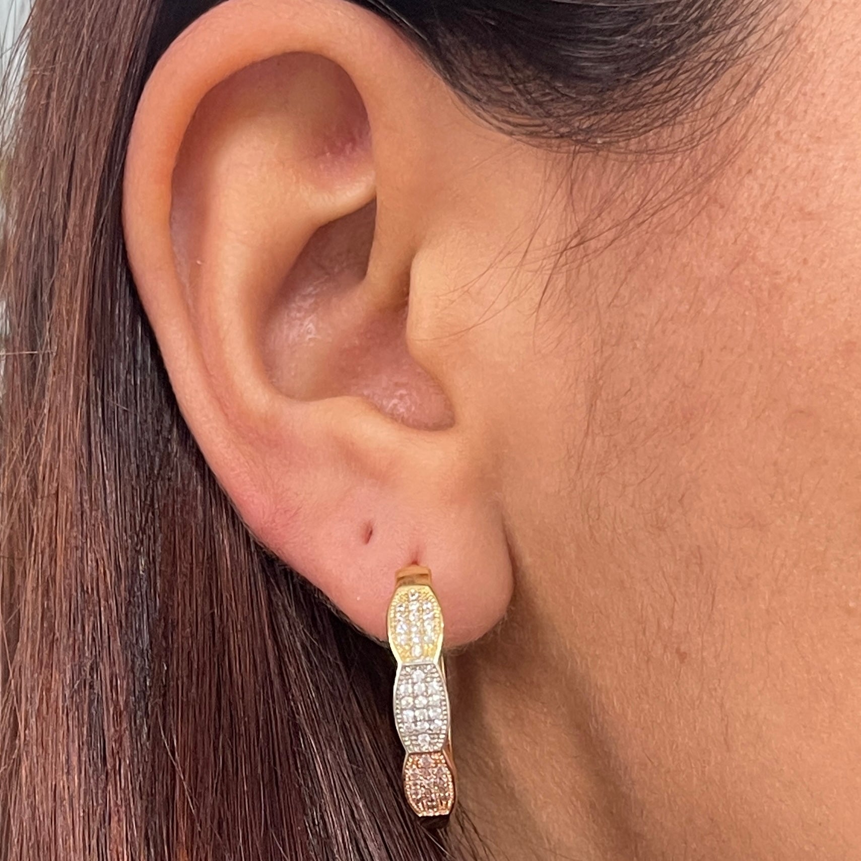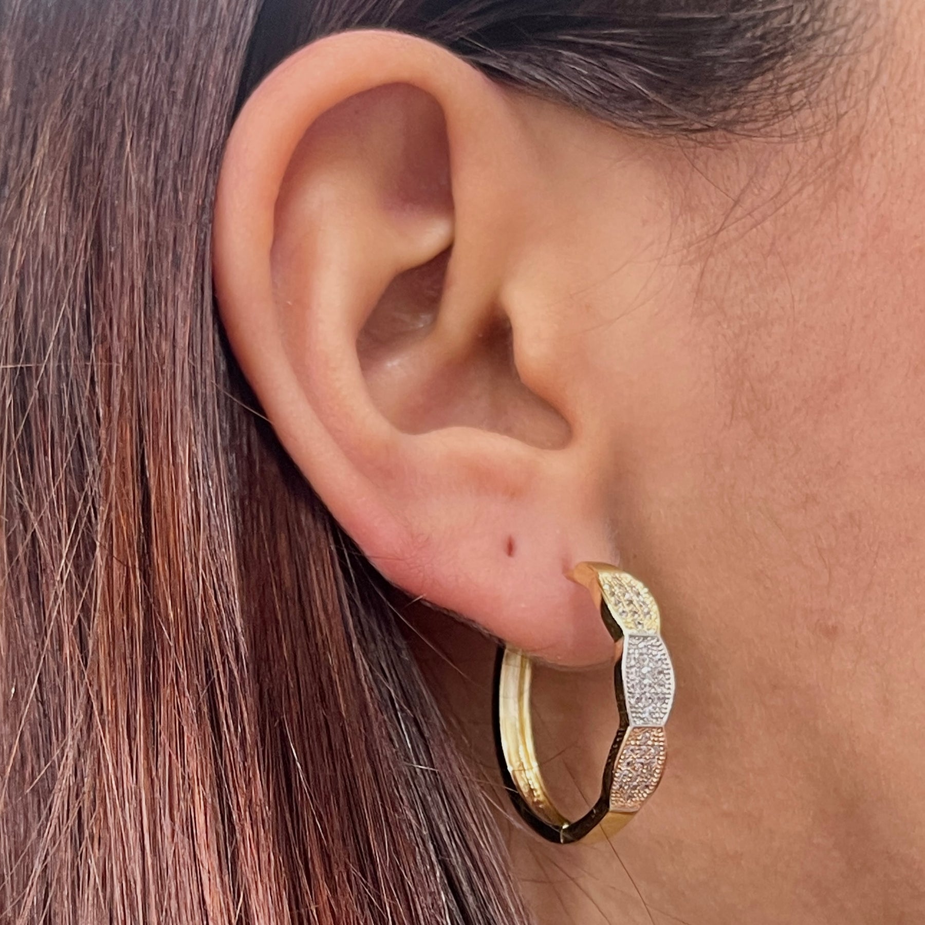 Estos magníficos huggies están fabricados con una aleación de metal de alta calidad y chapados en oro brillantes tres colores,Vendidos por pares, los Huggies 25MM son un regalo perfecto para cualquier ocasión