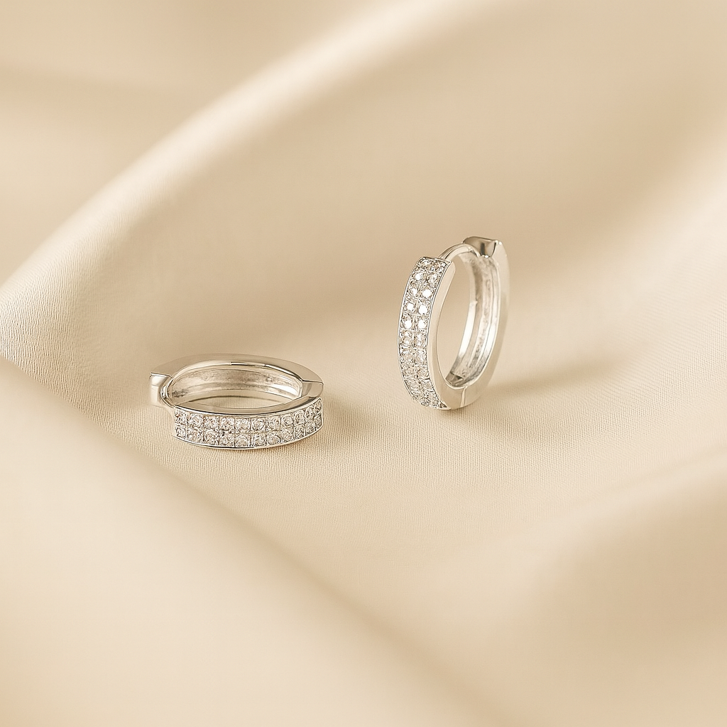 Huggies de Plata 12MM con Doble Fila CZ  | Nicola Joyería