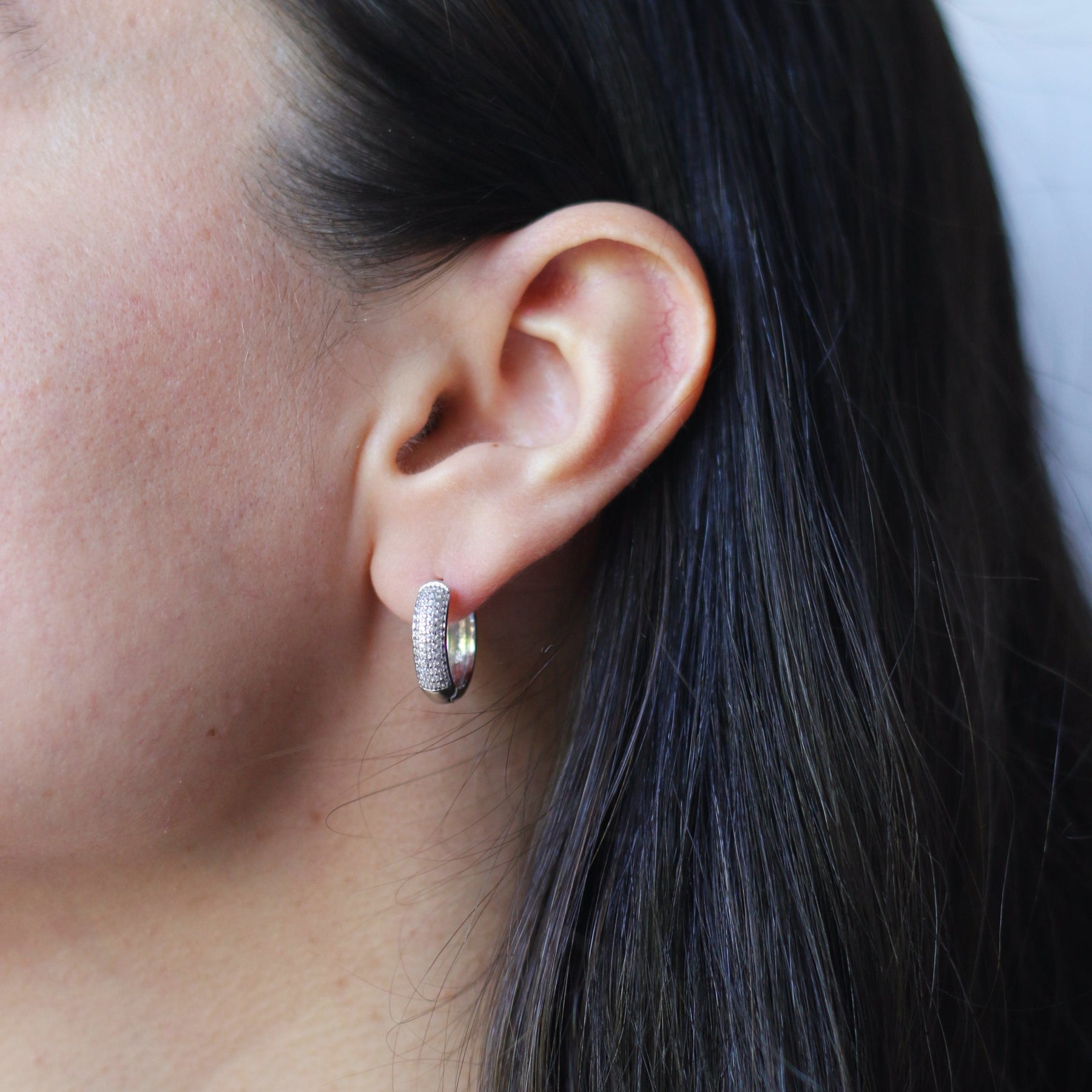 Estos preciosos Huggie de plata están hechos con 10MM de diámetro  y brillos  que te harán brillar toda la noche. Son perfectos para añadir un toque de glamour a cualquier atuendo, y son un gran regalo para esa persona especial en tu vida. ¡Pide tu par hoy y empieza a sentirte como la estrella que eres!