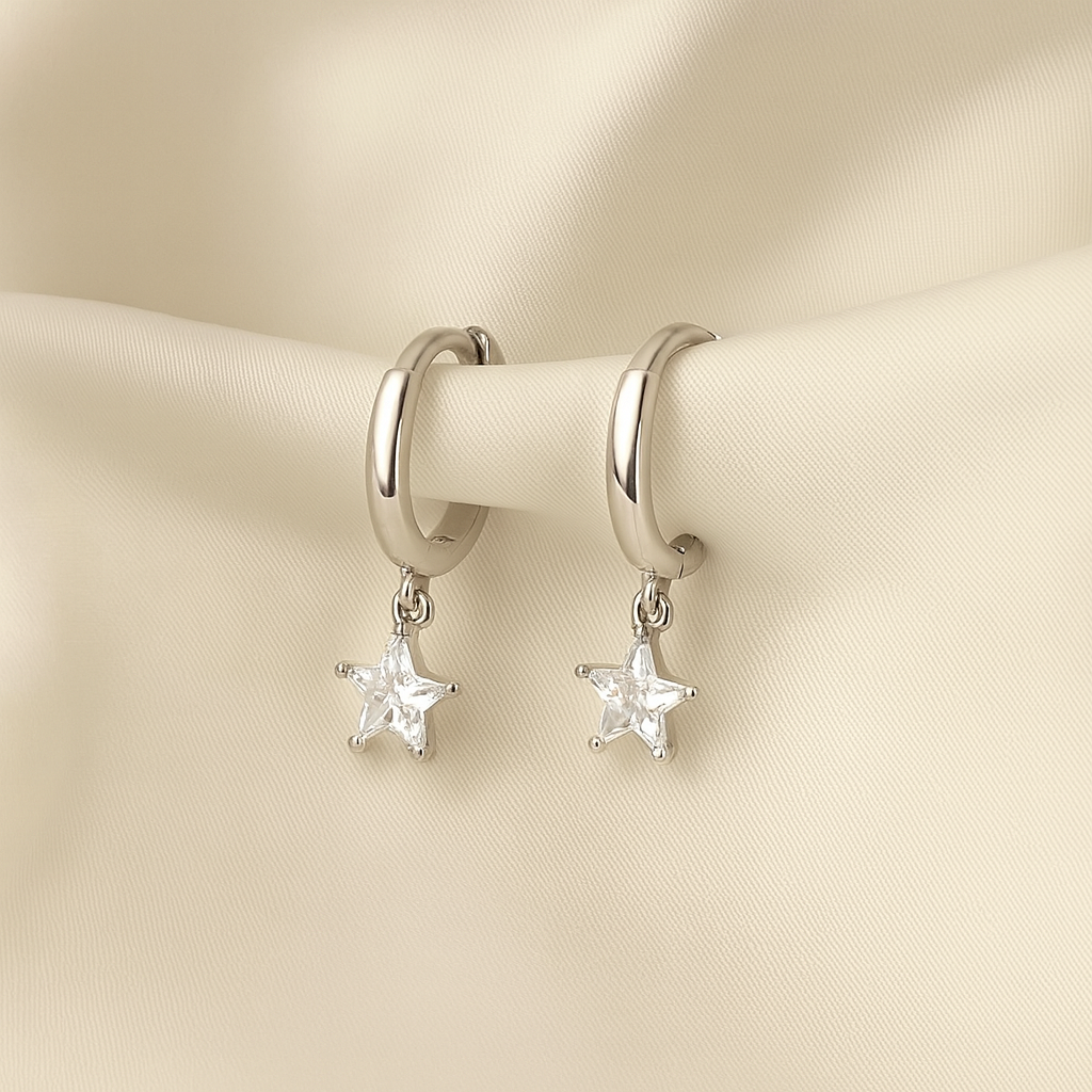 Huggies Plata 💎 Estrella Circonita ⭐️ | Nicola Joyería