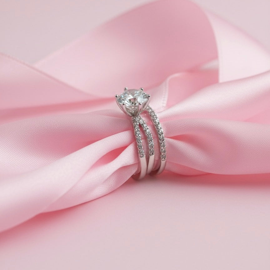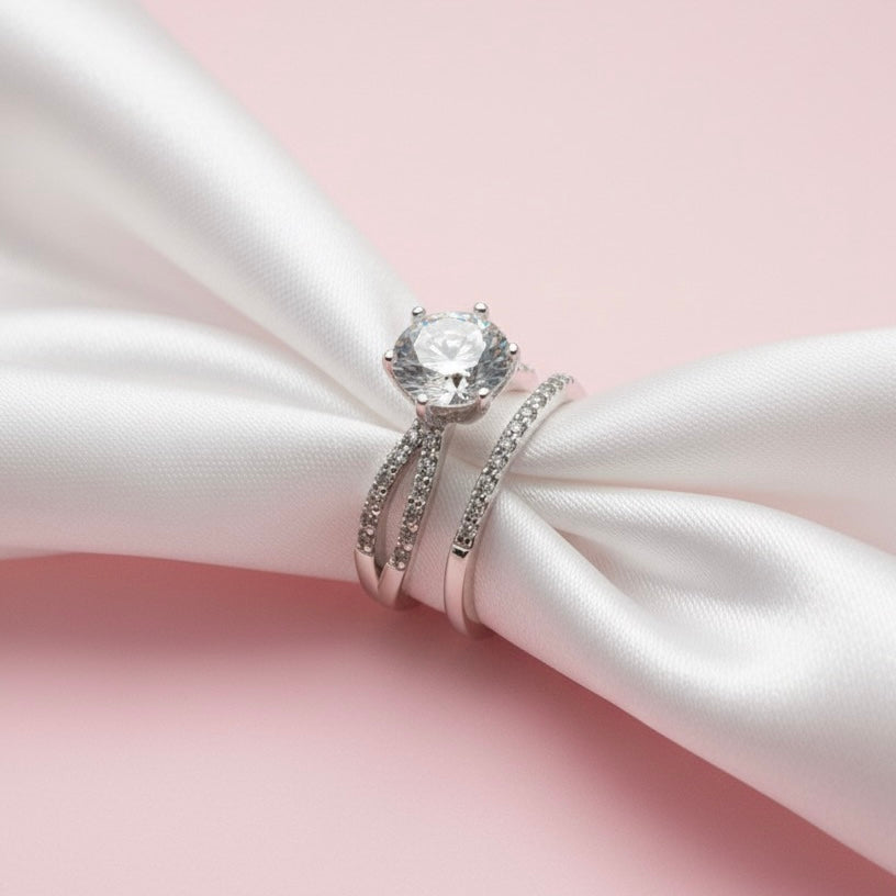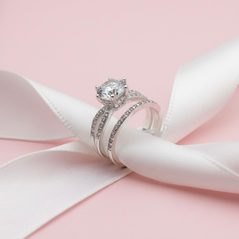 Anillo Dúo de Plata 925 con Circonia Central