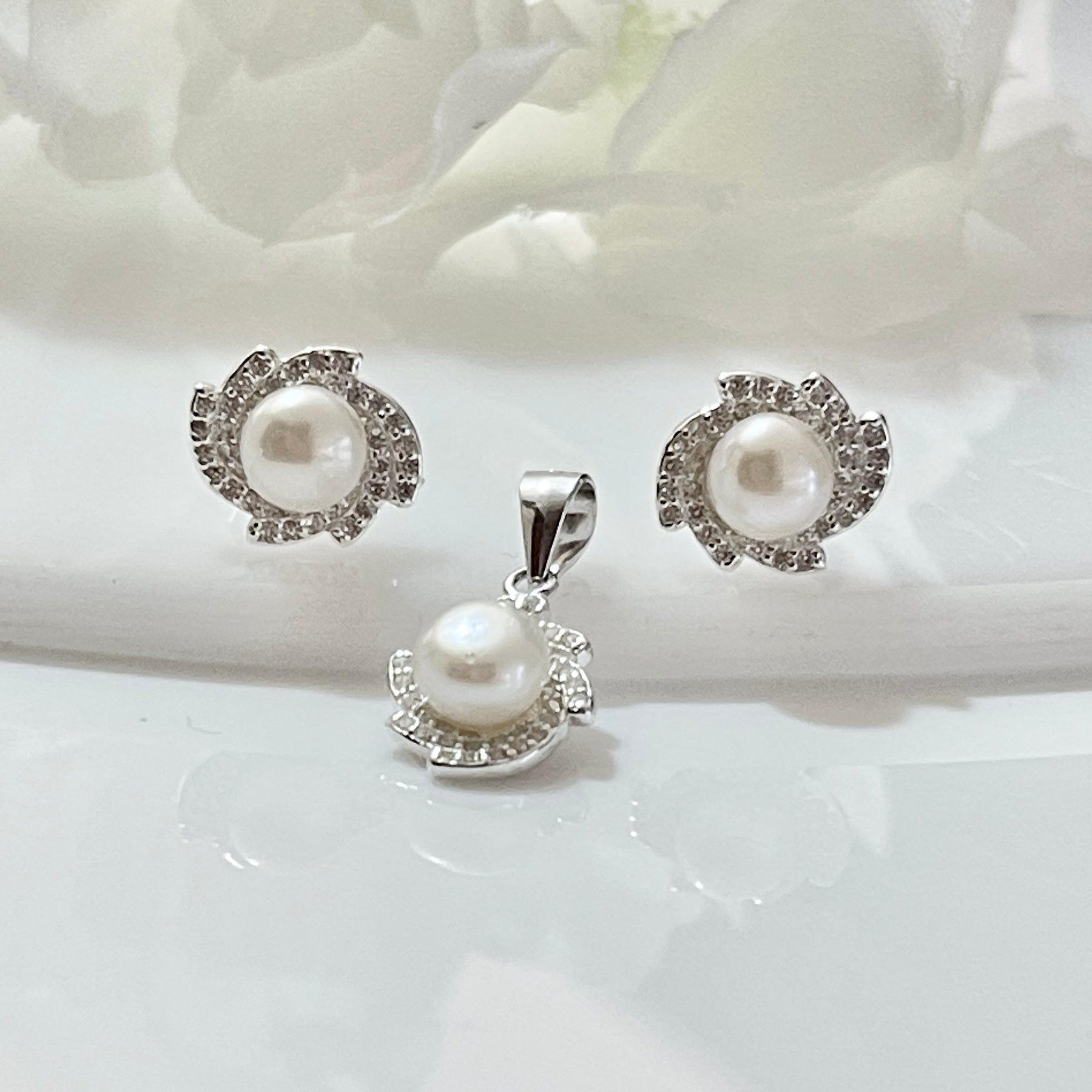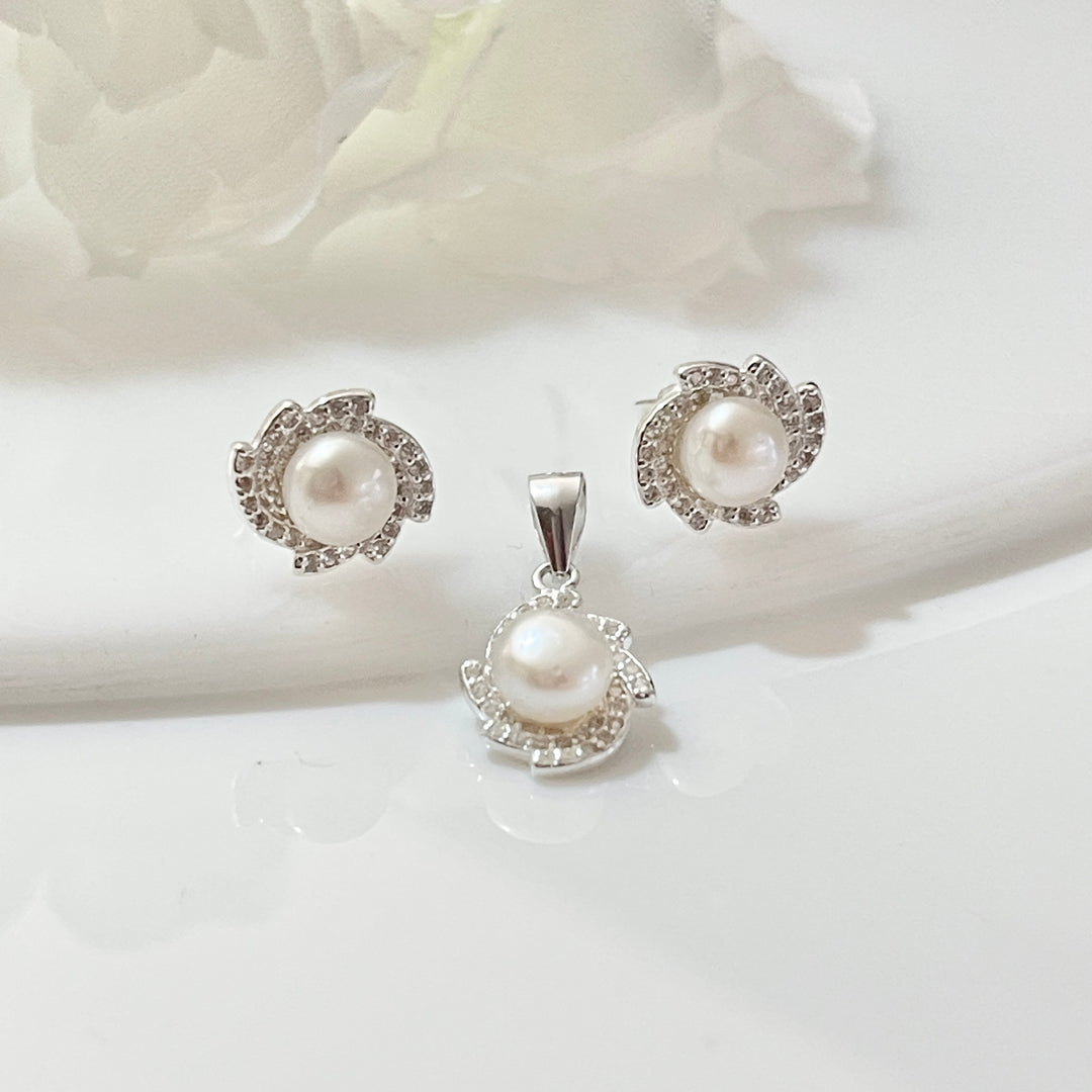 Haz una declaración con este impresionante conjunto de plata. Los aretes  y el colgante  son impresionantemente hermosos, el diseño  perlas cultivadas espiral   es llamativo y regio. Los aretes  miden 12mm y el colgante 12mm. Tanto si te vistes para una ocasión especial como si simplemente acentúas tu estilo diario, este conjunto de plata seguro que te impresionará.