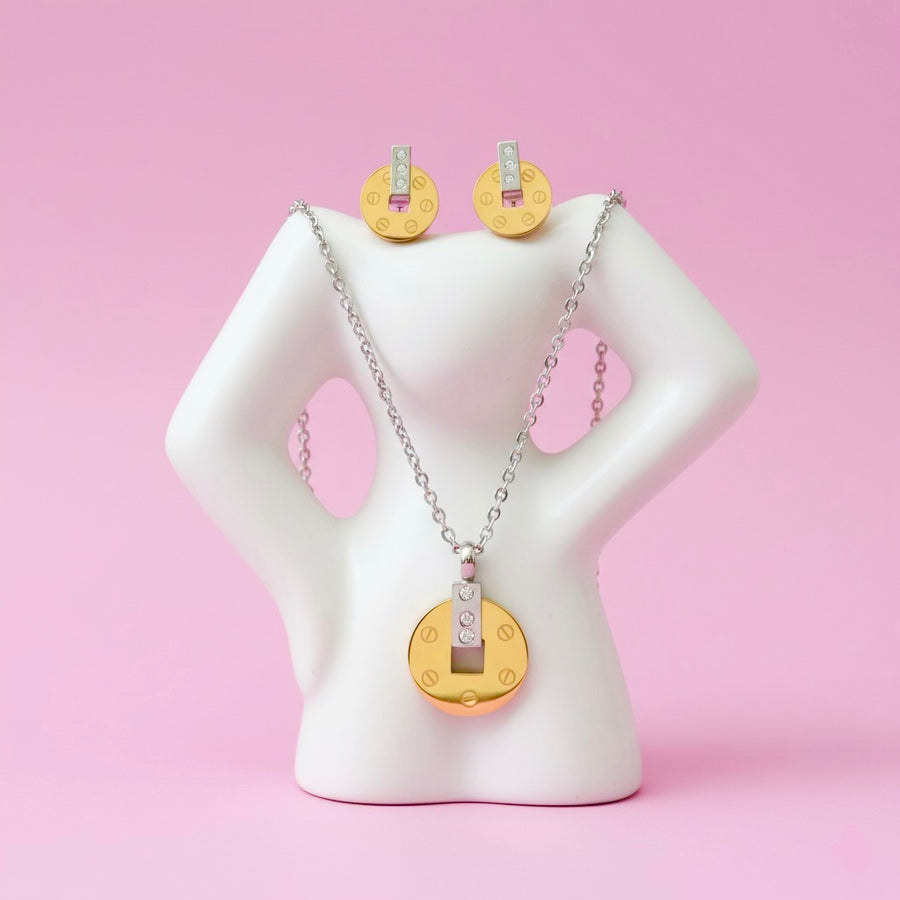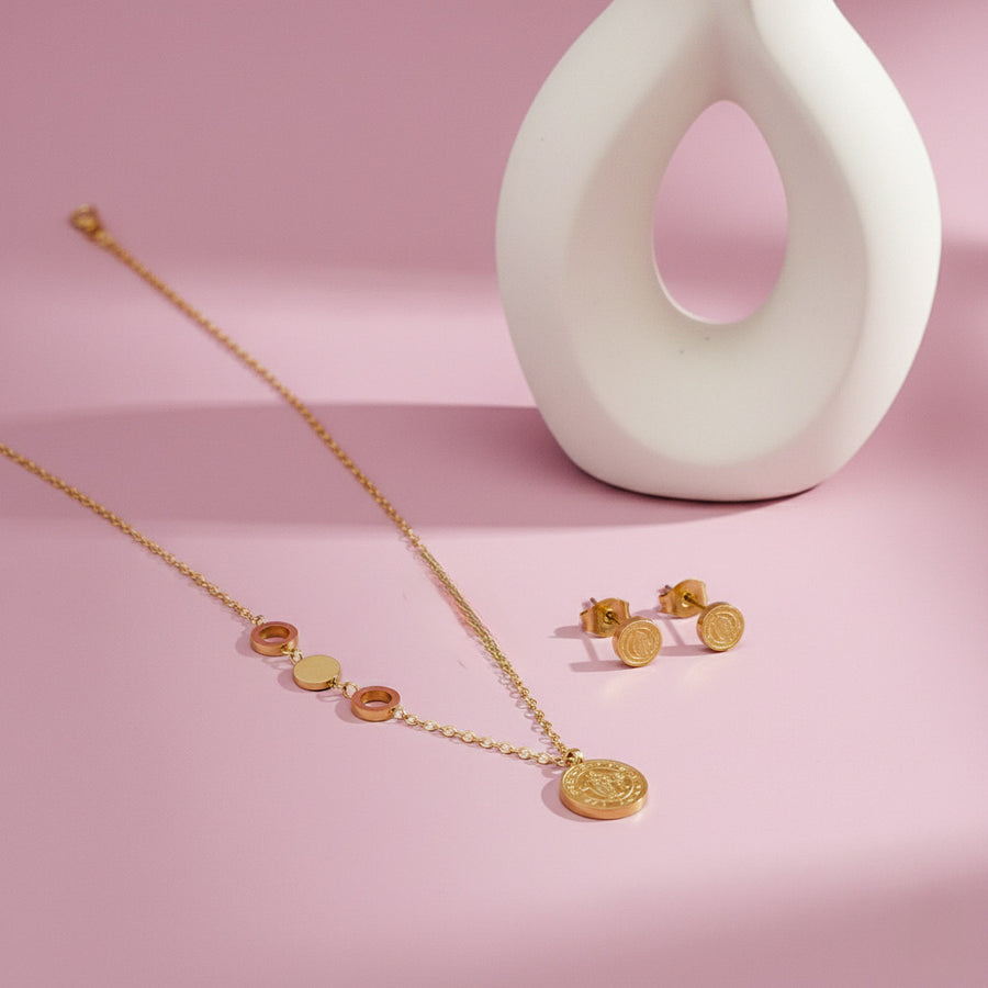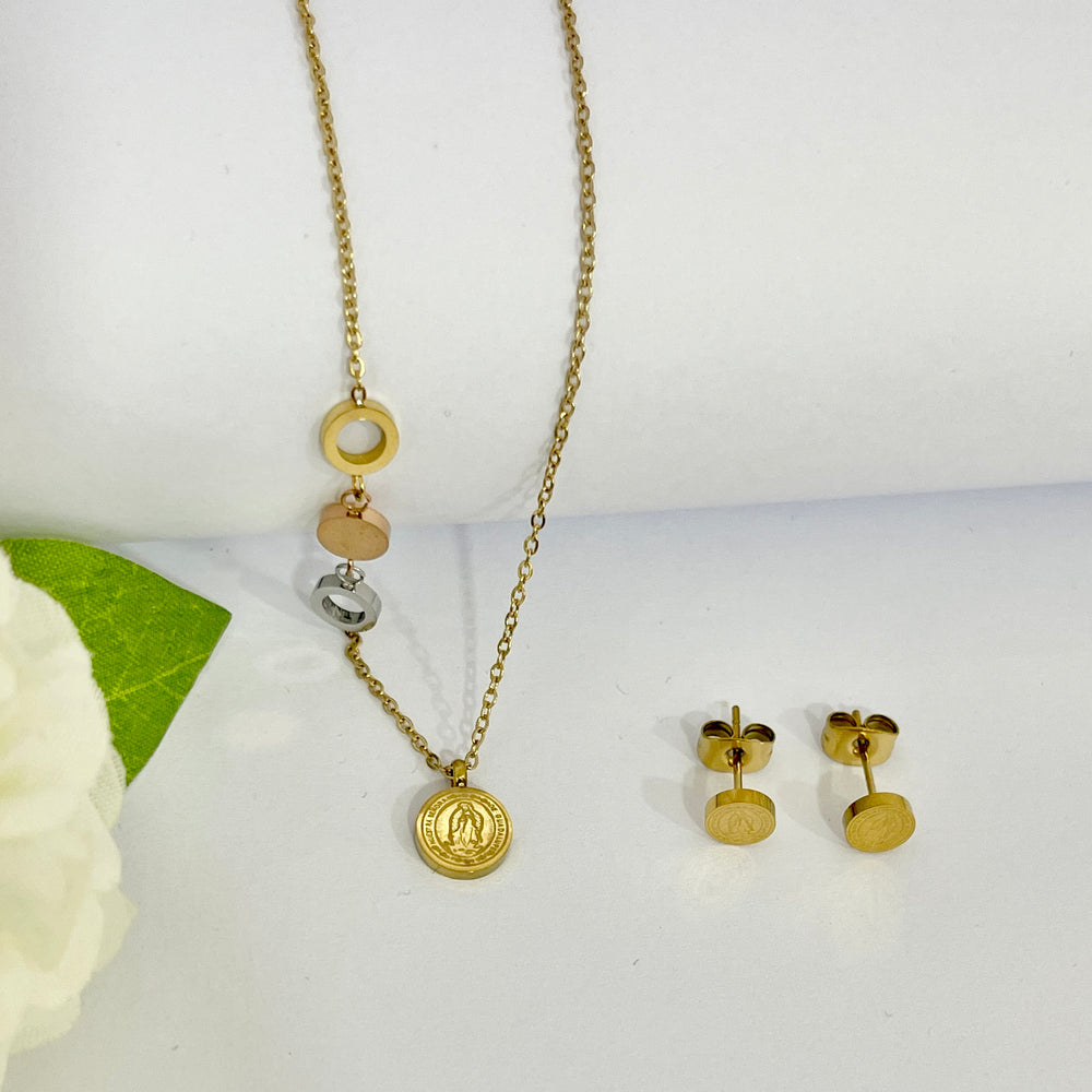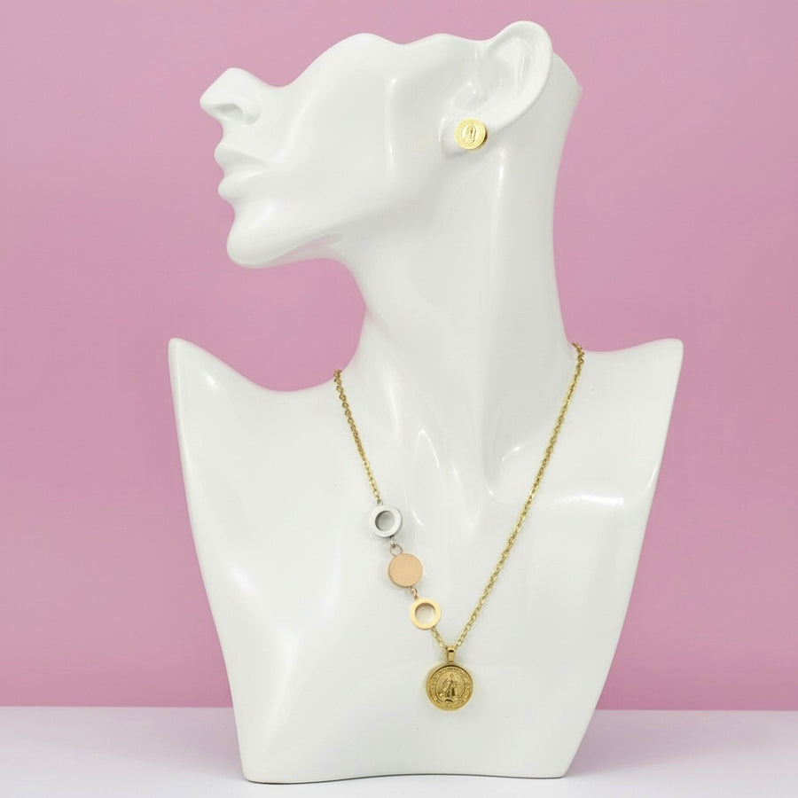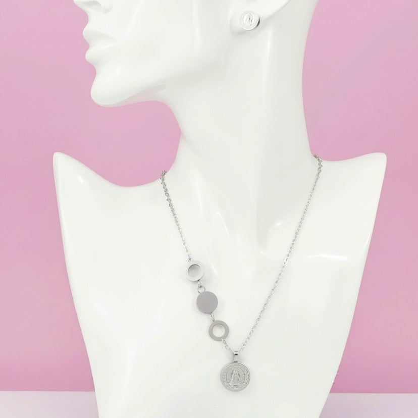 🎖 Collar con Dije y Aretes de Acero Inoxidable en Juego | Costa Rica