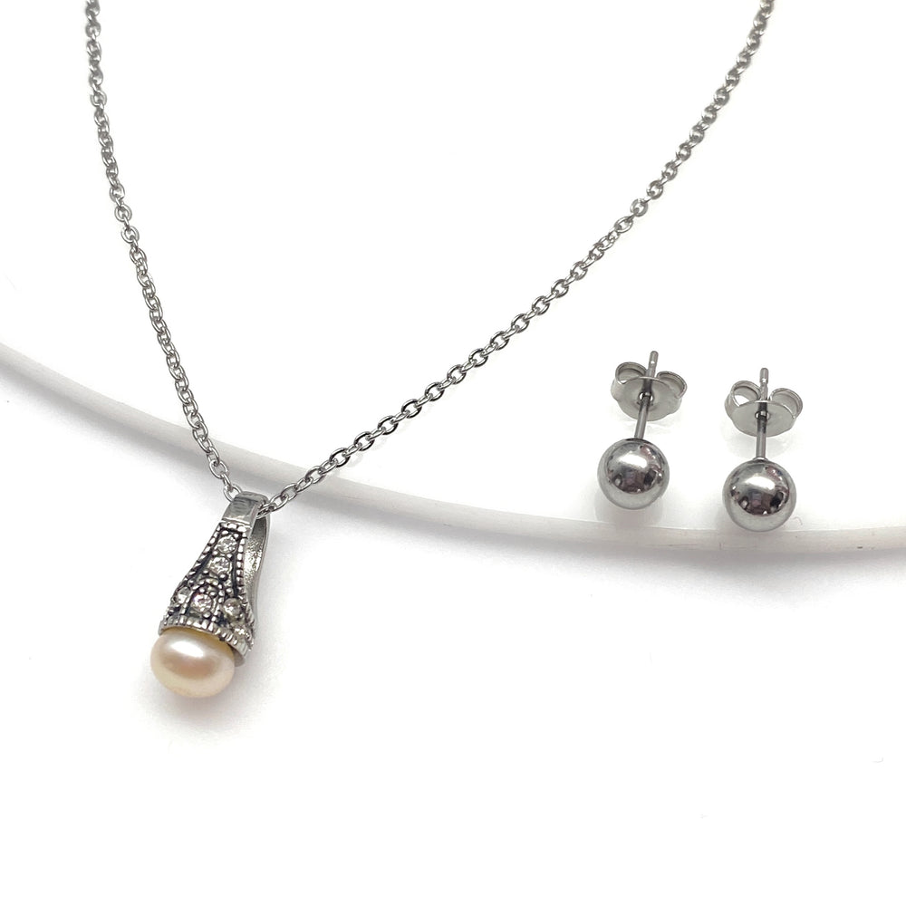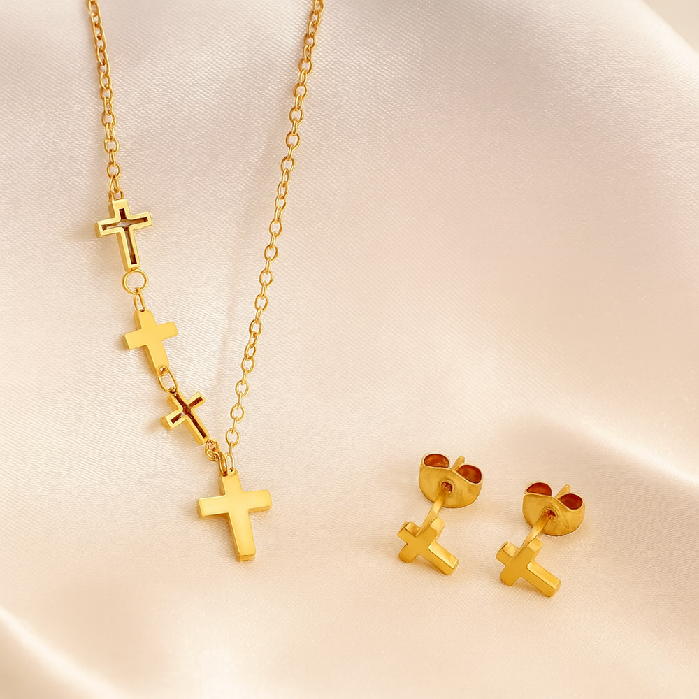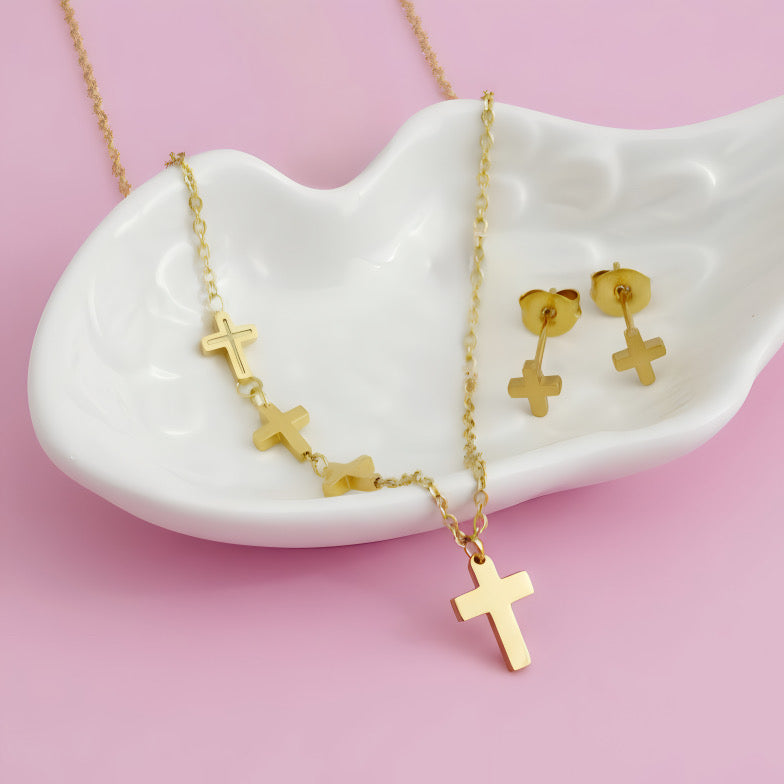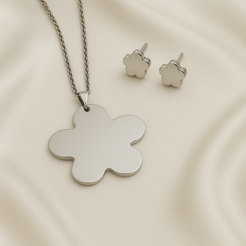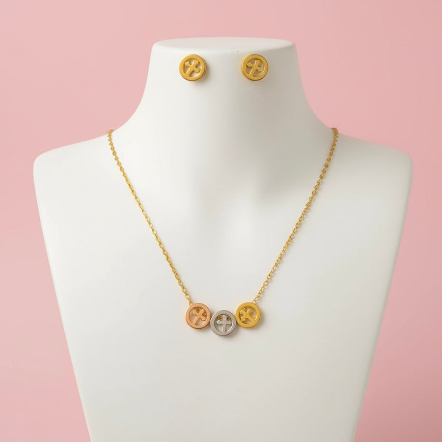 🎖 Collar con Dije y Aretes de Acero Inoxidable en Juego | Costa Rica