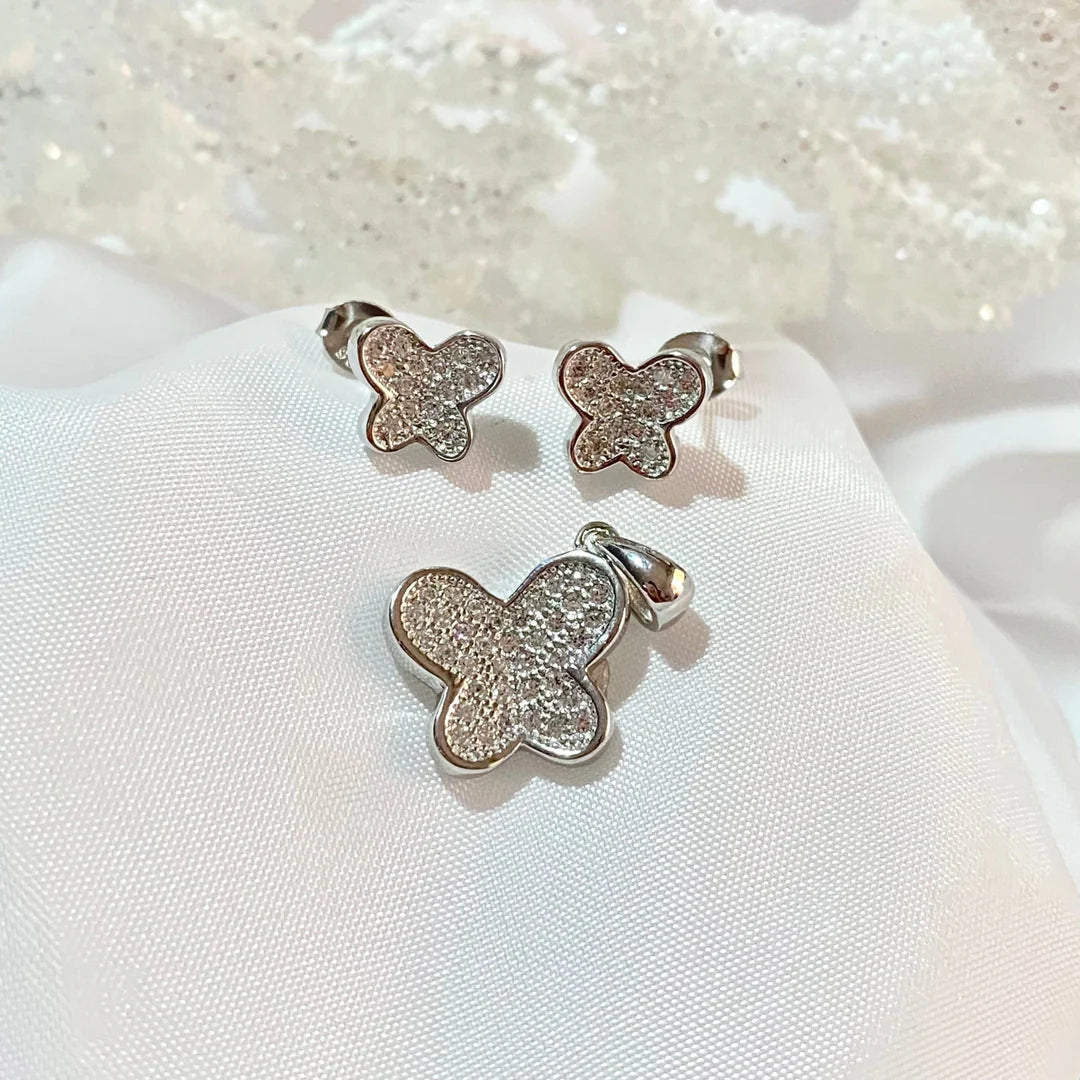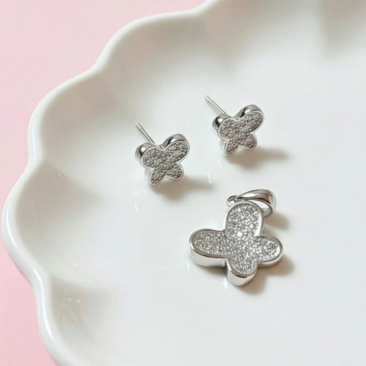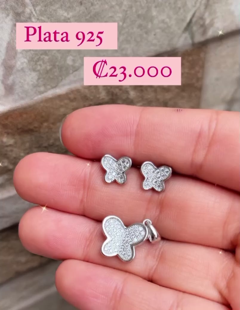 • Aretes y dije de plata rodinada