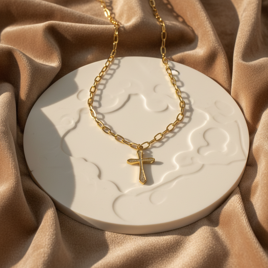 Gargantilla de Acero Cruz Brillo ✝️