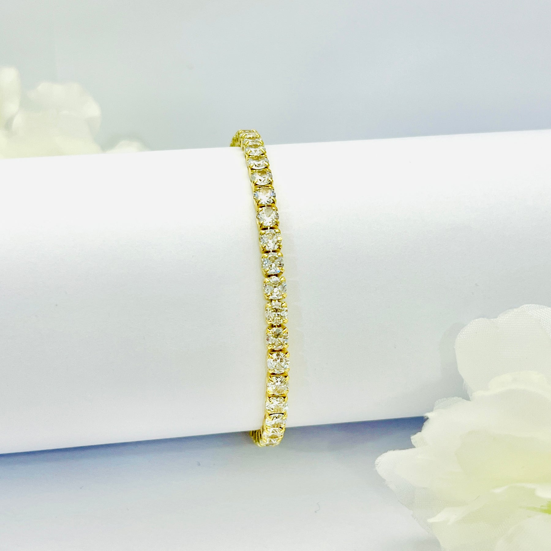 • Pulsera Acero Inoxidable Aura Dorada con Circonias grandes