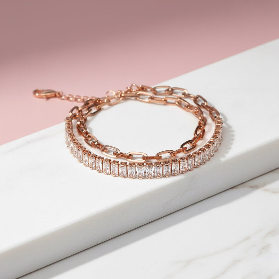 Pulsera Acero ✨ Doble Baguettes Oro Rosa