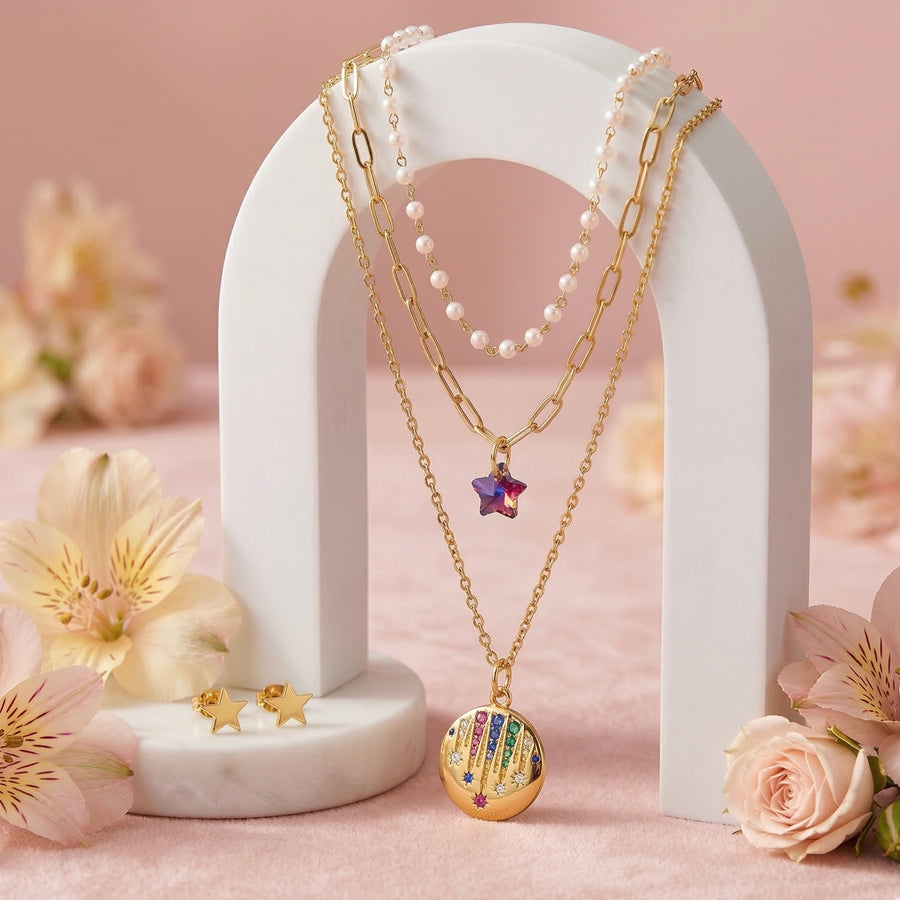 Tobillera Acero 🌟💝 Estrella y Corazón Multicolor
