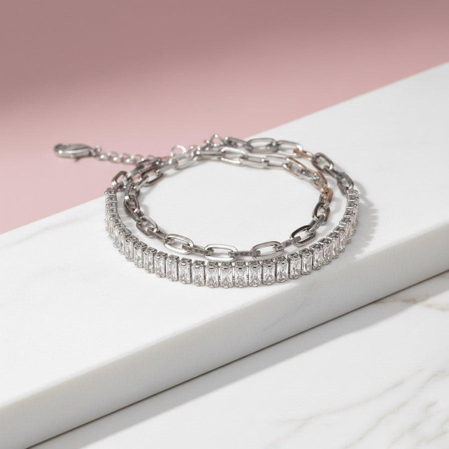 Pulsera Acero ✨ Doble Baguettes Plateada
