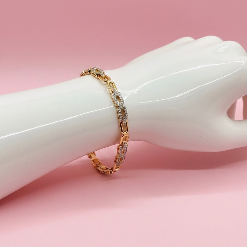 Pulsera Acero Circonias Brillantes Dorado