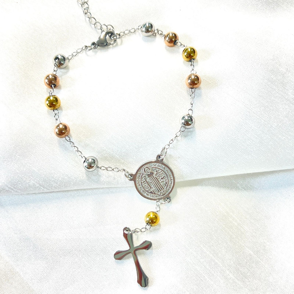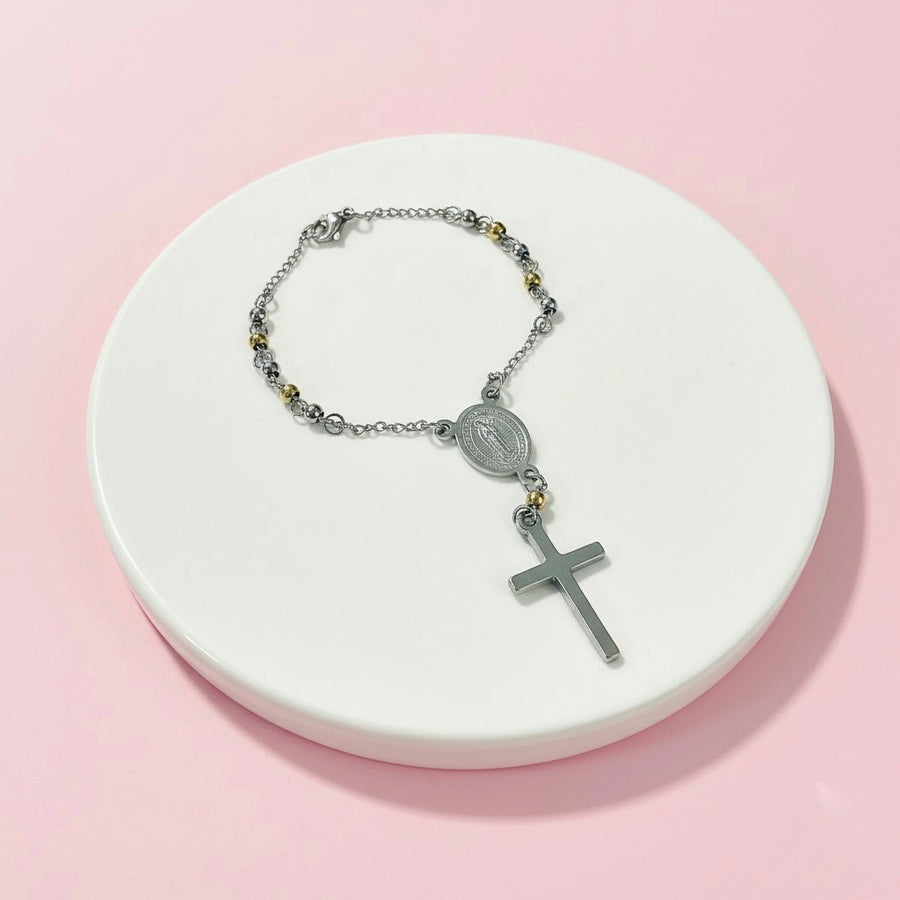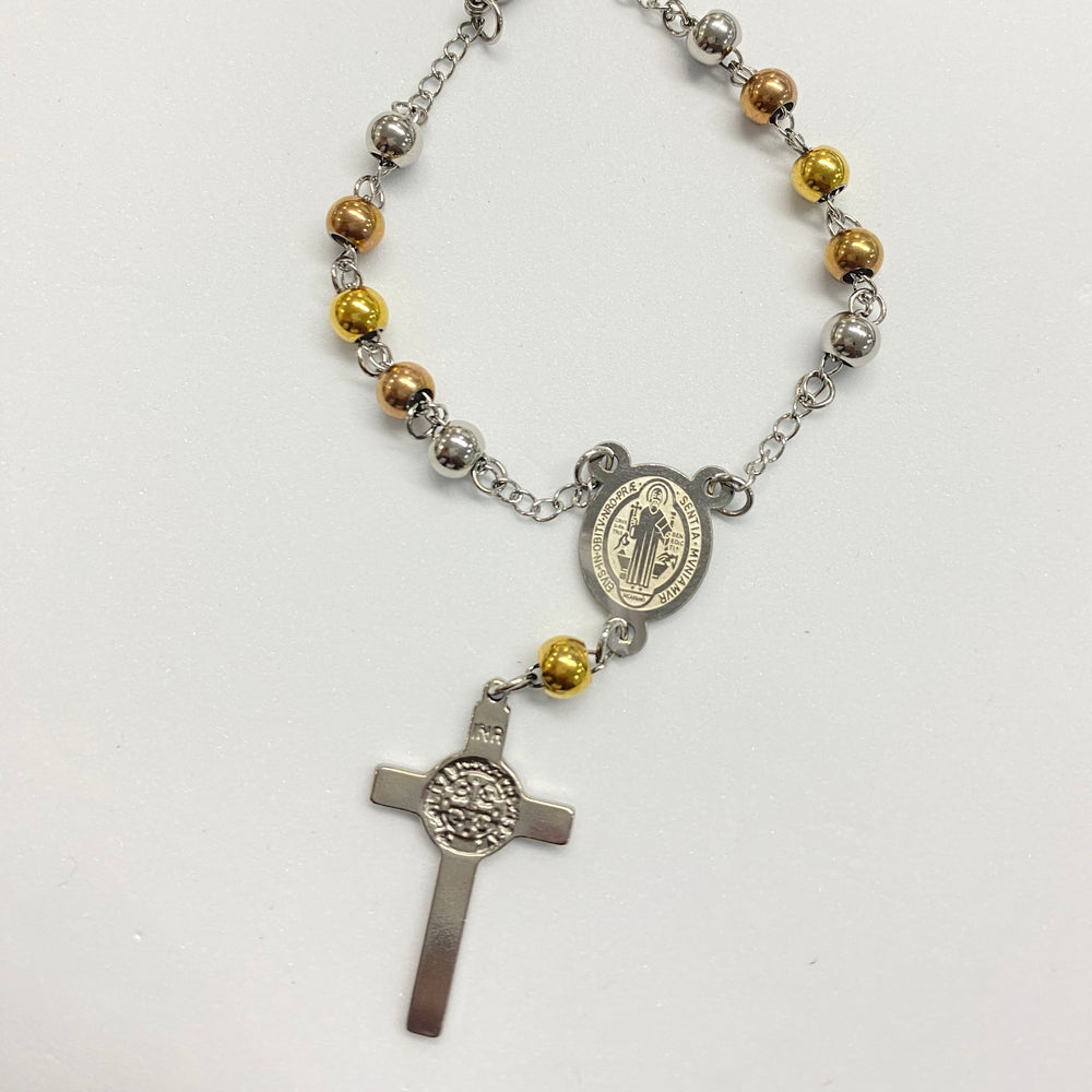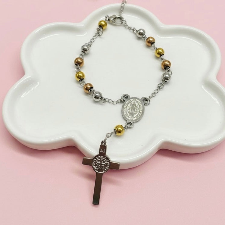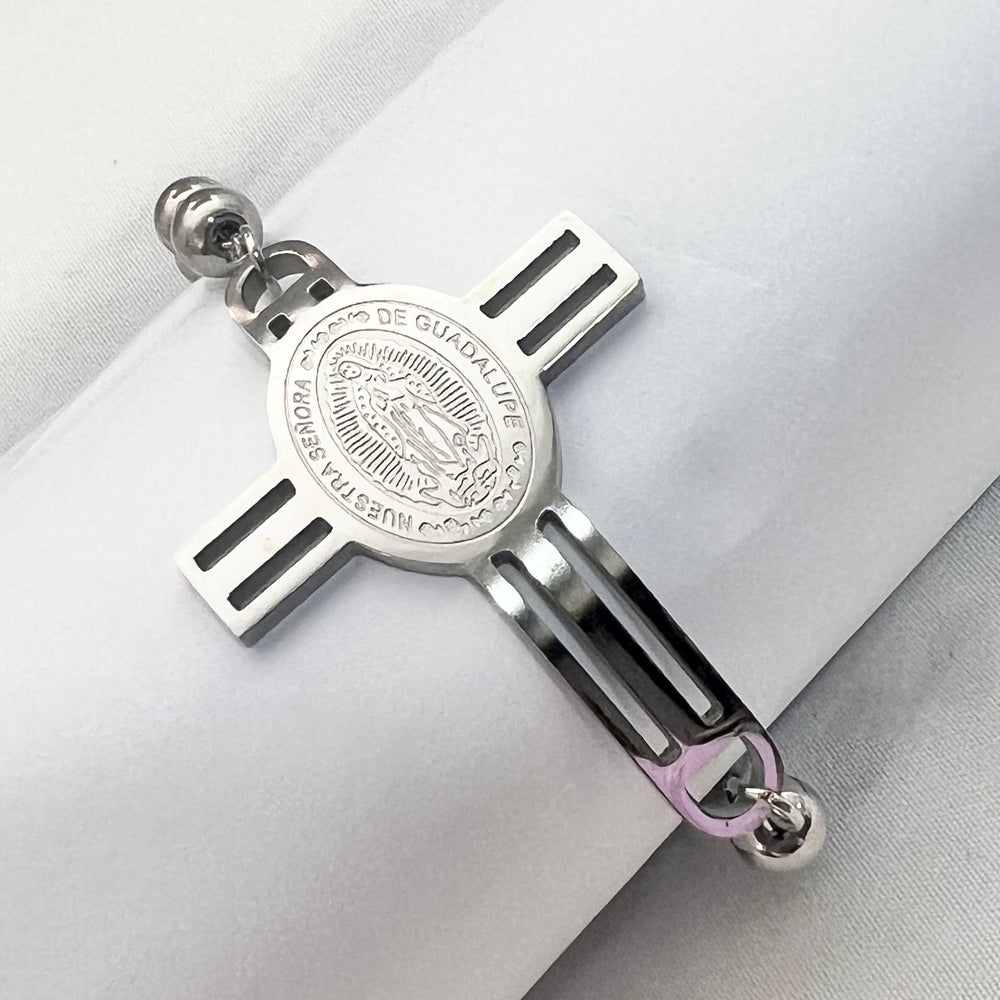 Pulsera Acero Rosario Virgen Guadalupe Dorada