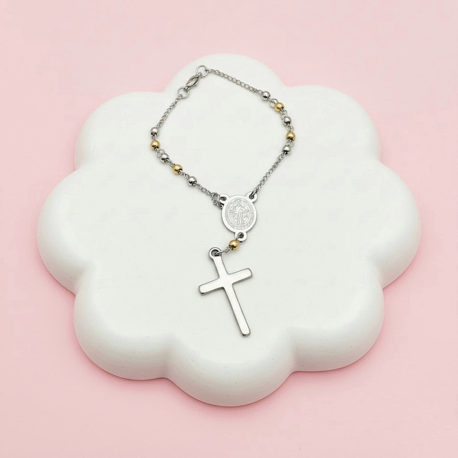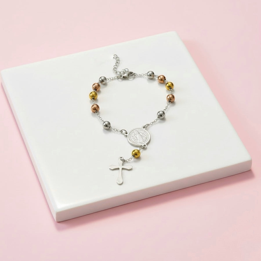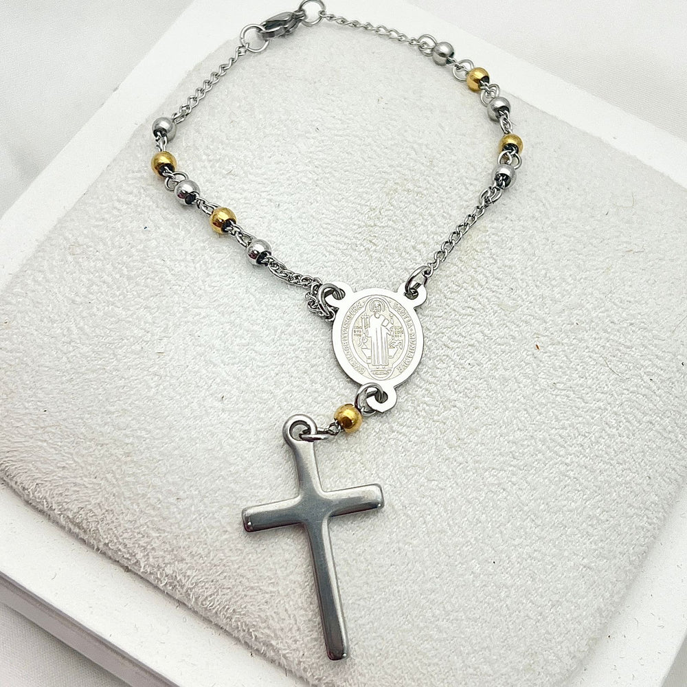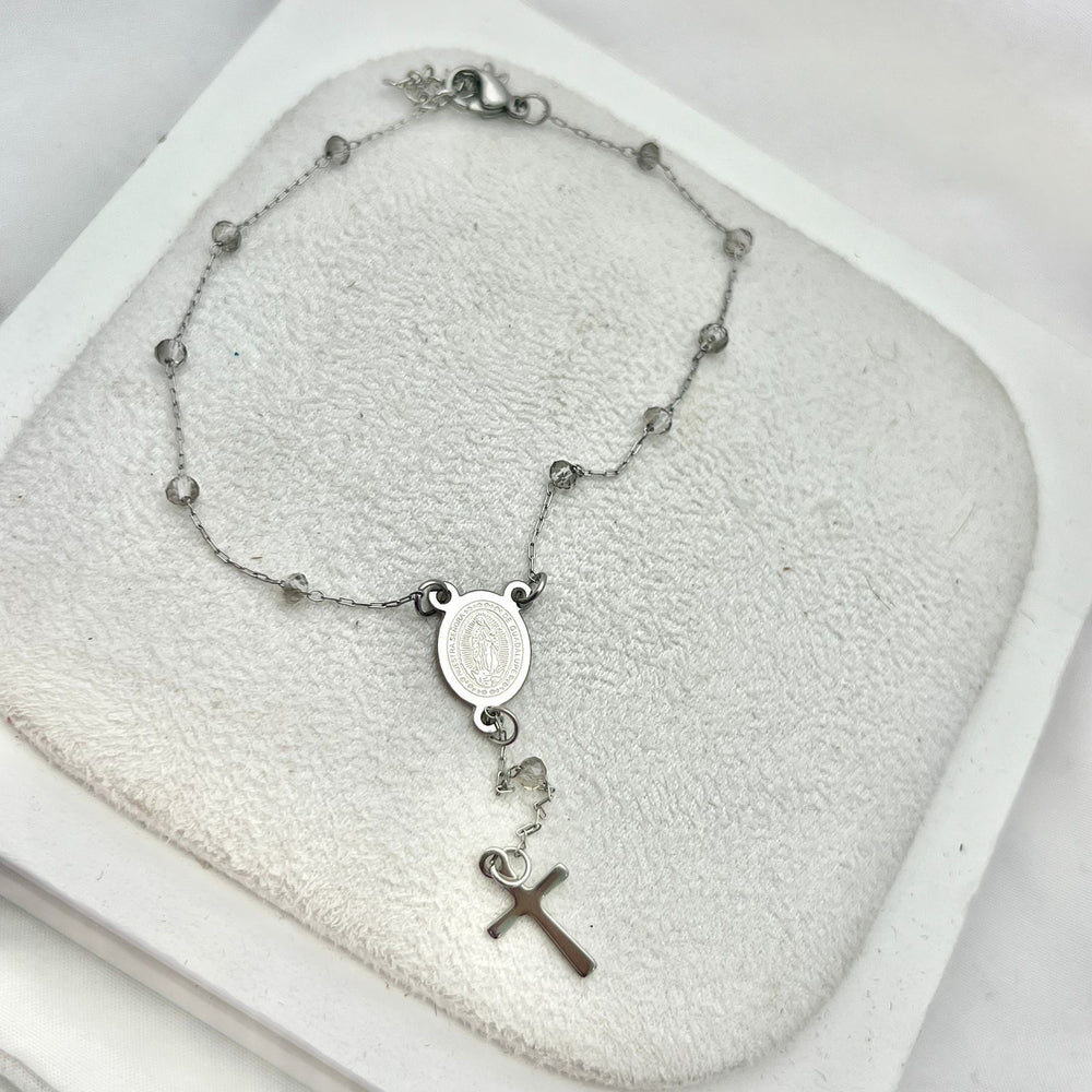 Pulsera Acero Rosario Virgen Guadalupe Dorada