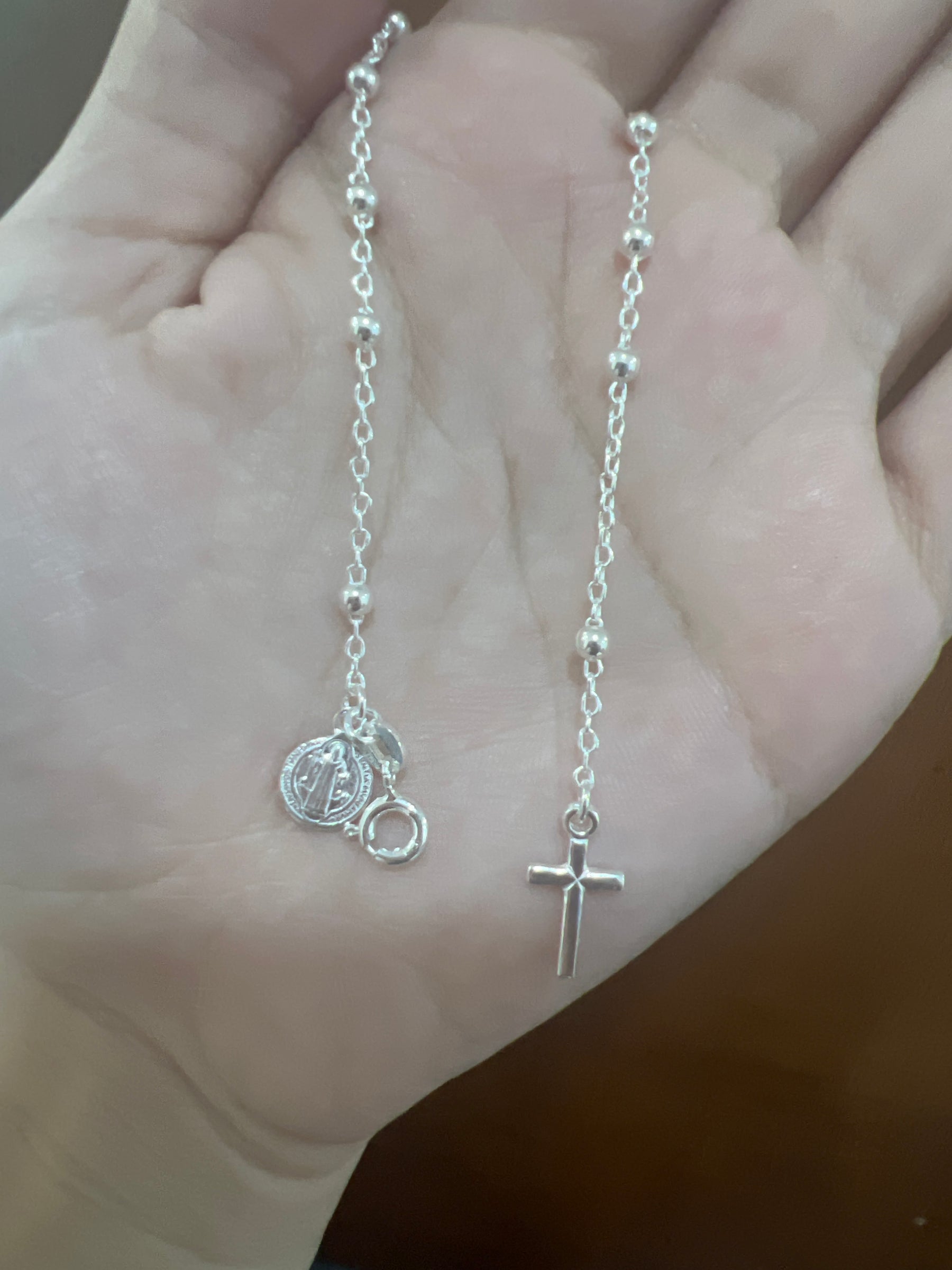 Esta hermosa pulsera tipo rosario de plata 925 es un elemento imprescindible en cualquier colección de joyas. Fabricada en plata de alta calidad, esta pulsera tipo rosario mide