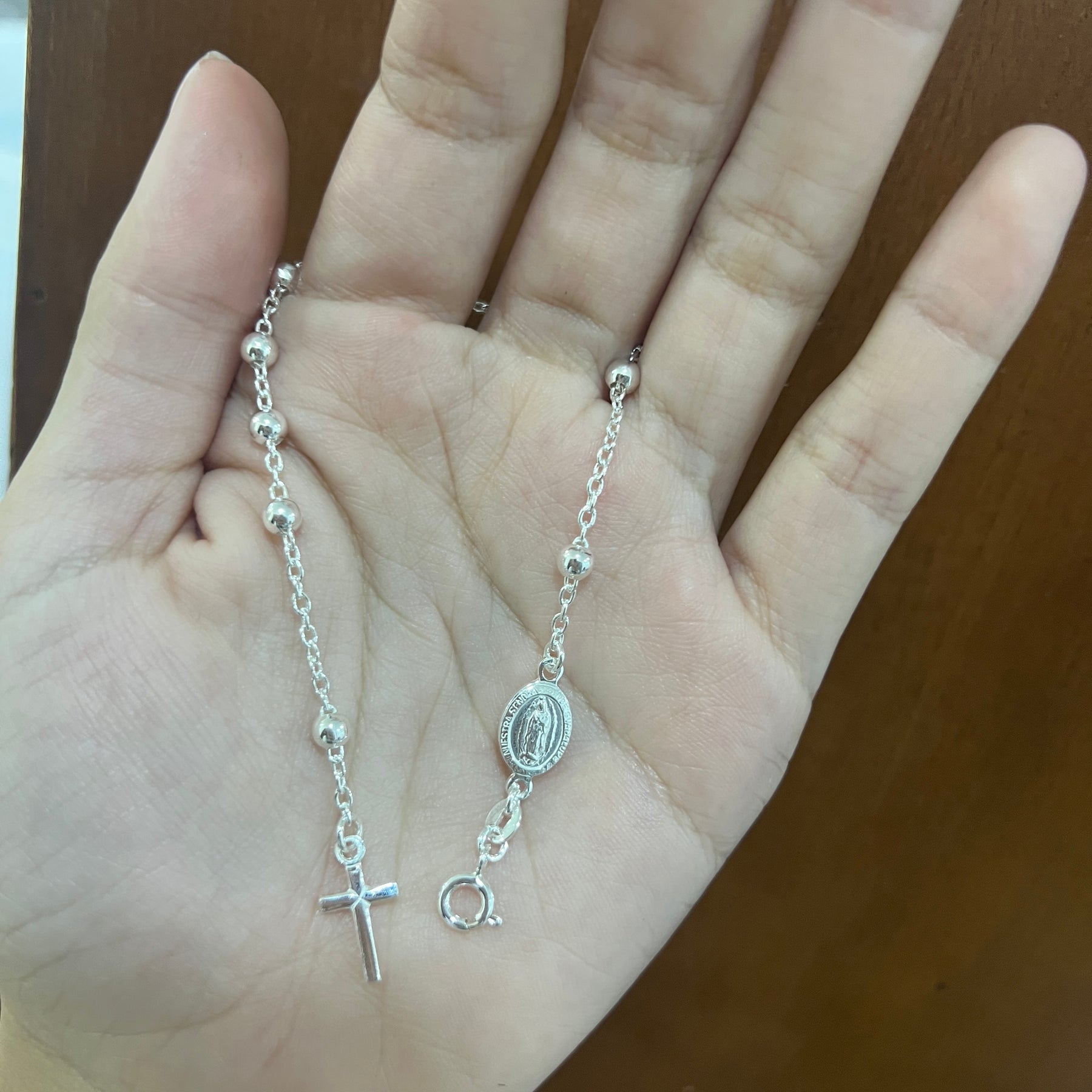 Esta hermosa pulsera tipo rosario de plata 925 es un elemento imprescindible en cualquier colección de joyas. Fabricada en plata de alta calidad, esta pulsera tipo rosario mide