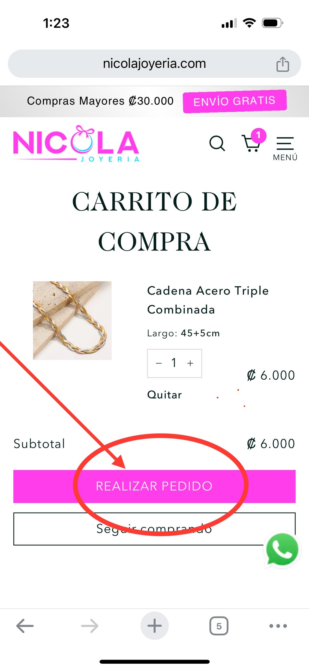 1) Agrega productos al carrito y toca realizar pedido (puedes escoger entre cualquiera de nuestras categorías de Plata 925, Acero, Pandöra, Oro)