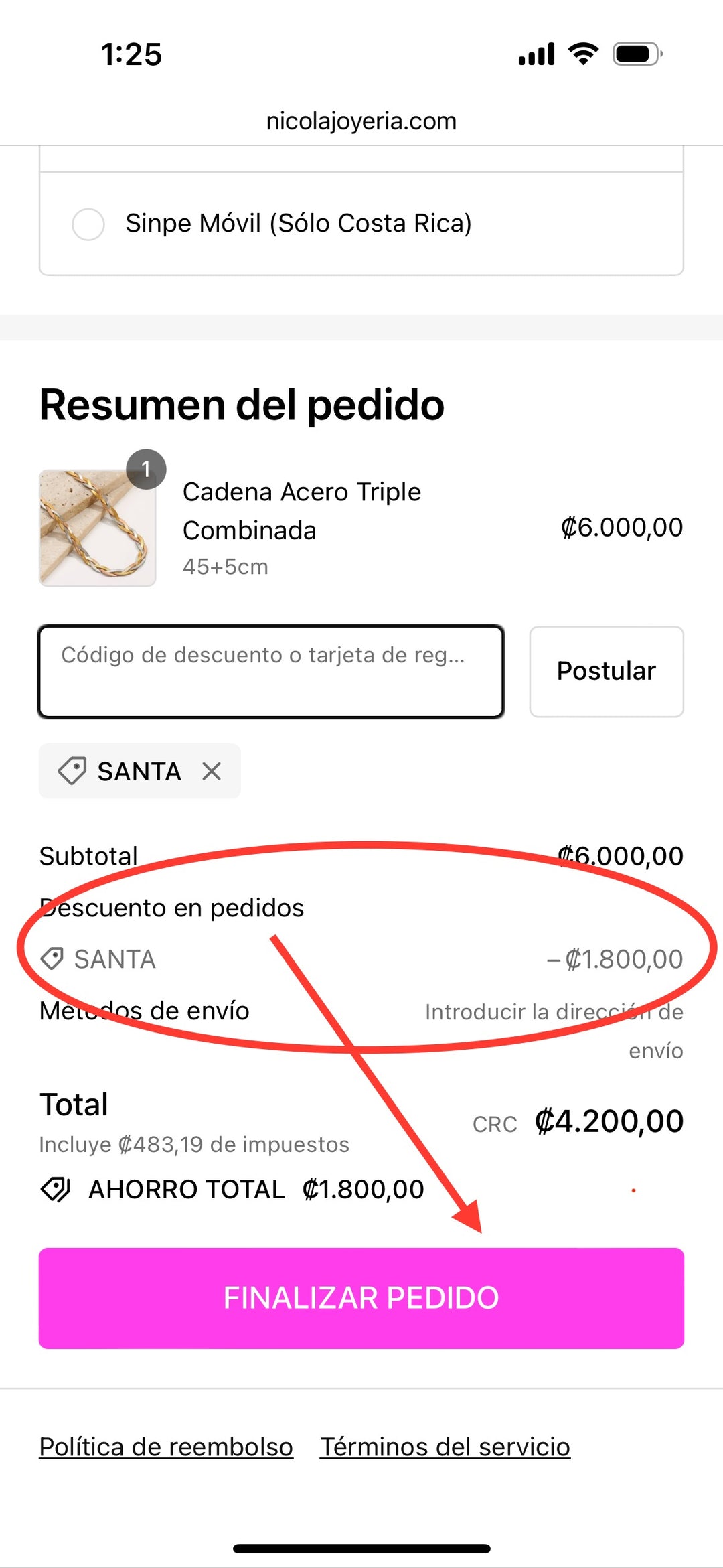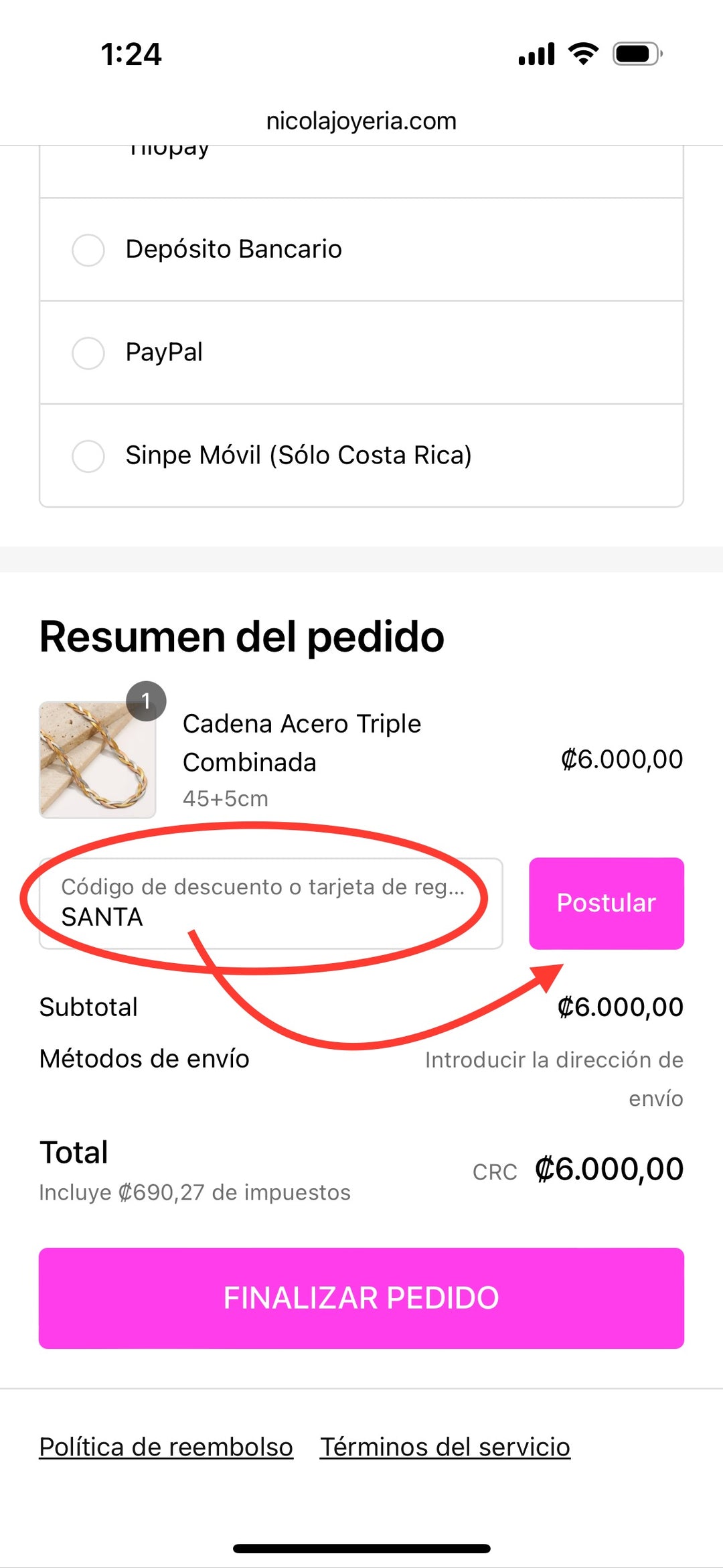 #2) Escribe SANTA en la casilla de código de descuento y toca el botón: "Postular"