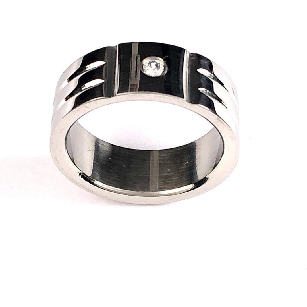 Anillo de Acero Inoxidable con Piedras Zirconia Cúbica Blancas.