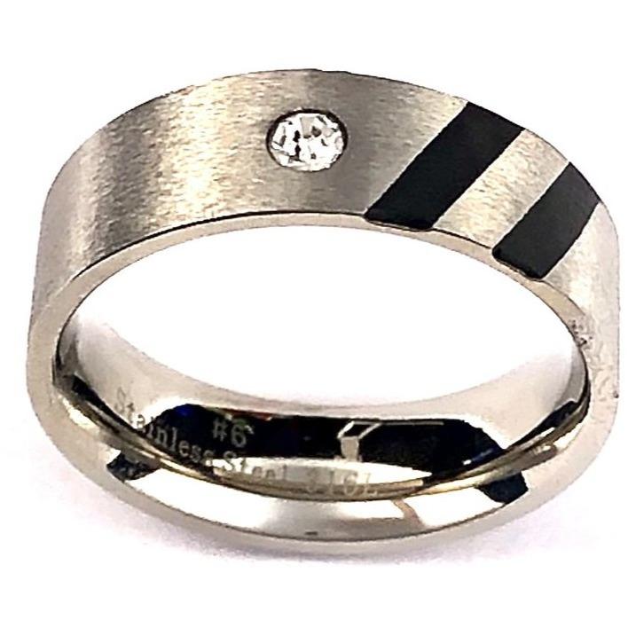 Anillo de Acero Inoxidable con Piedra Zirconia Cúbica Blanca.