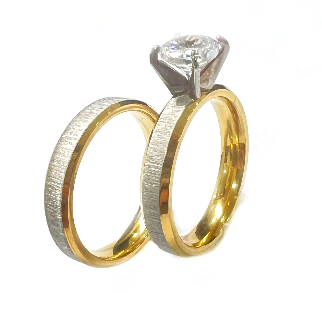 Anillo de acero inoxidable combinado tipo compromiso con zirconia cúbica redonda.