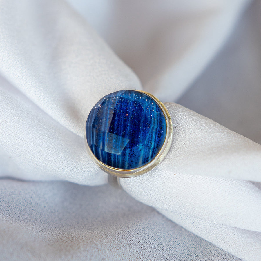 Anillo de plata 925 con piedra semipreciosa cuarzo azul.
