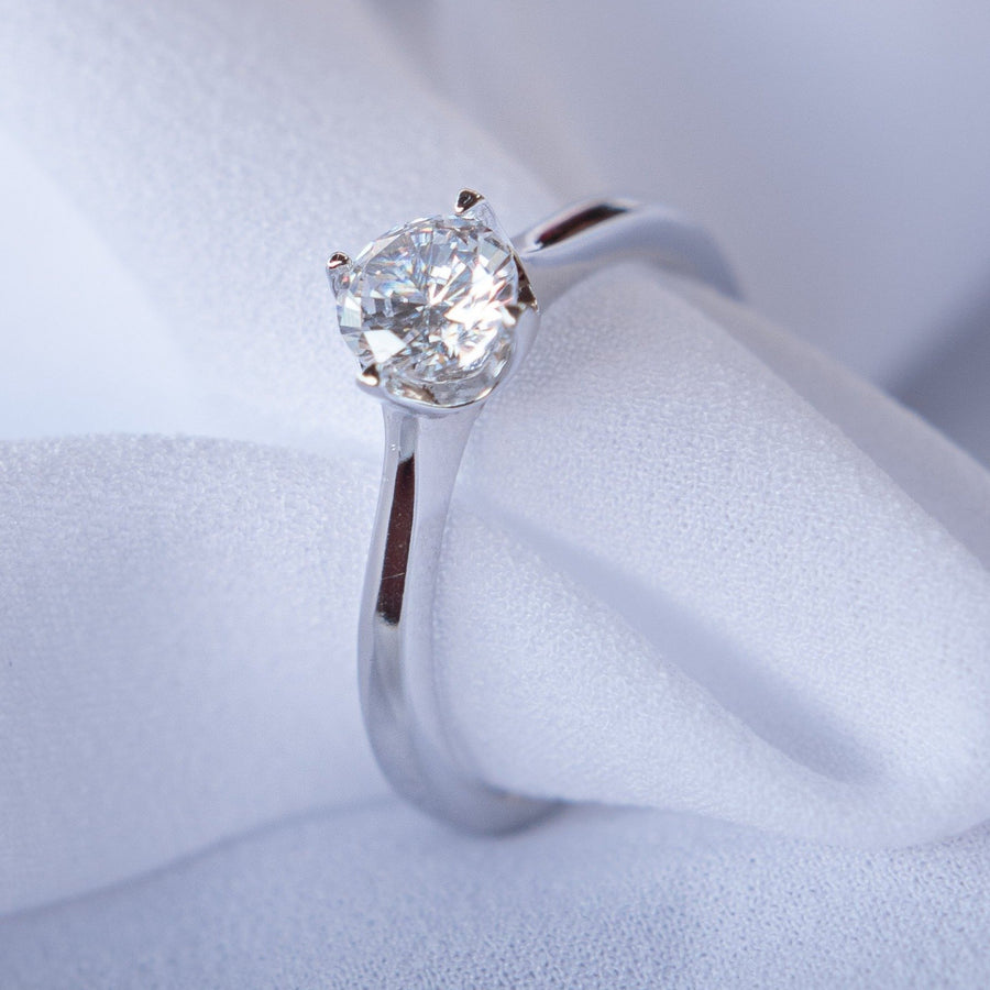 Nuestro anillo de compromiso es clásico, brillante, hermoso y elegante.
