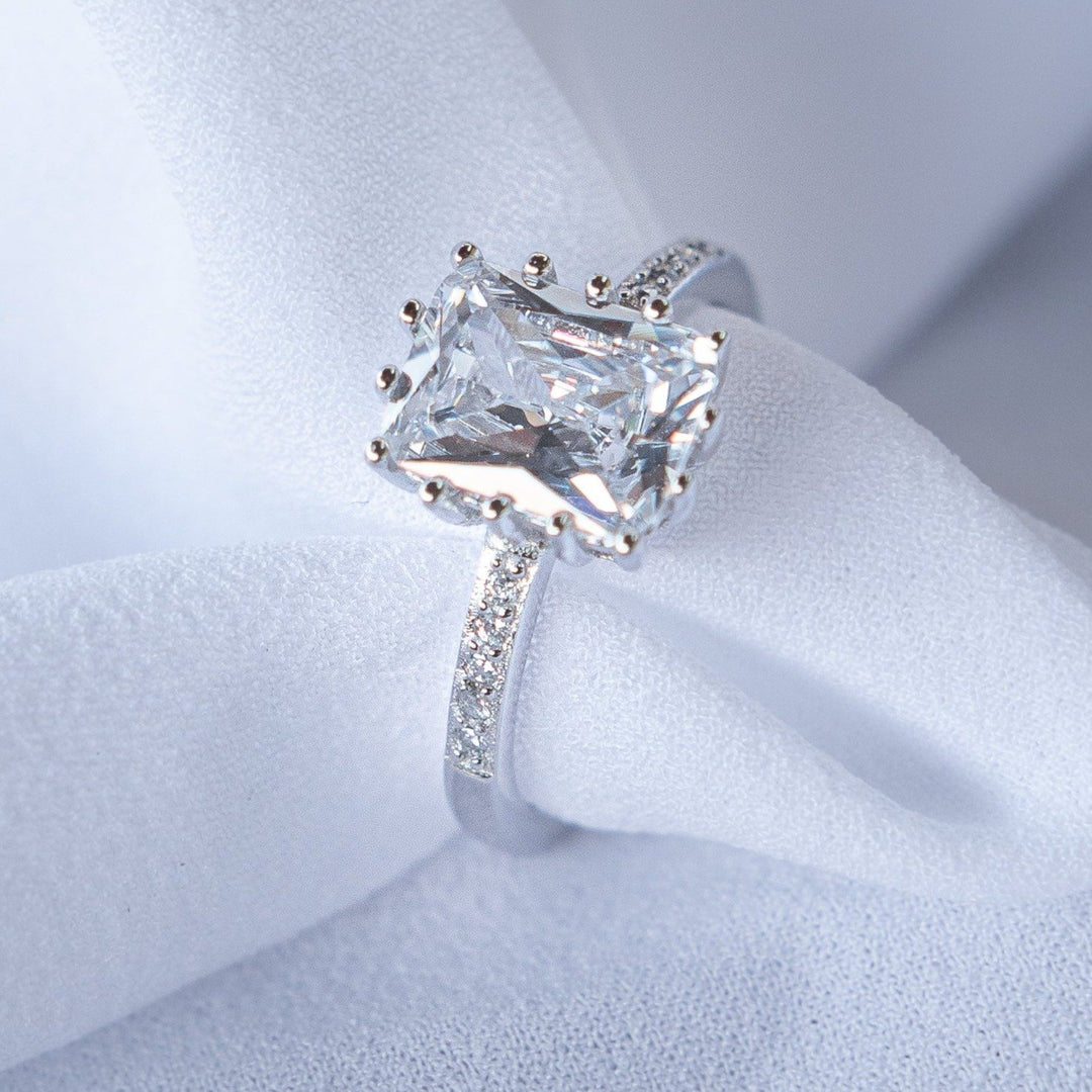 Nuestro anillo de compromiso es clásico, brillante, hermoso y elegante.