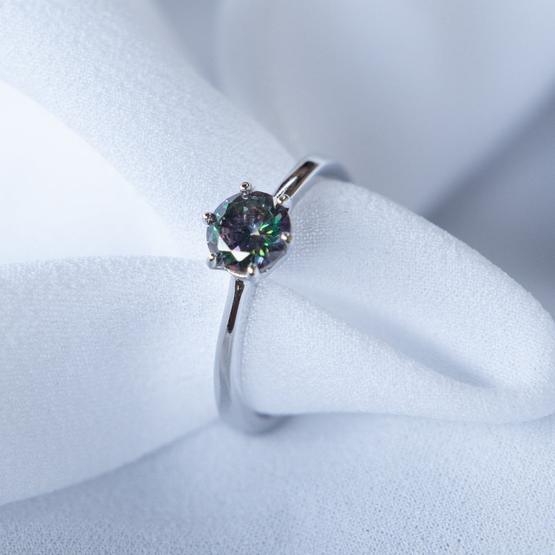 Anillo solitario con topacio mistico, brillante, hermoso y elegante.