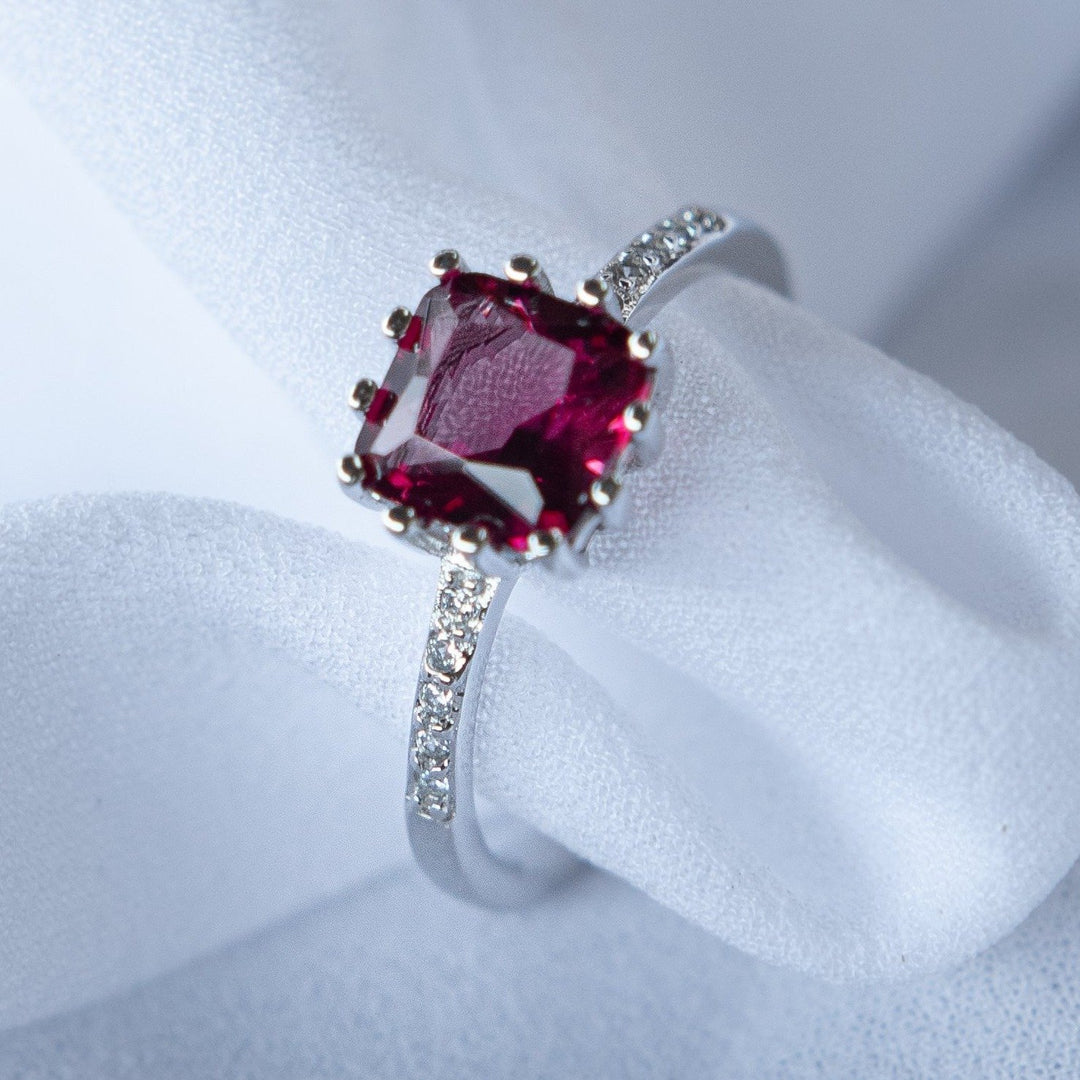 Anillo con zirconia roja cuadrada, brillante, hermoso y elegante.